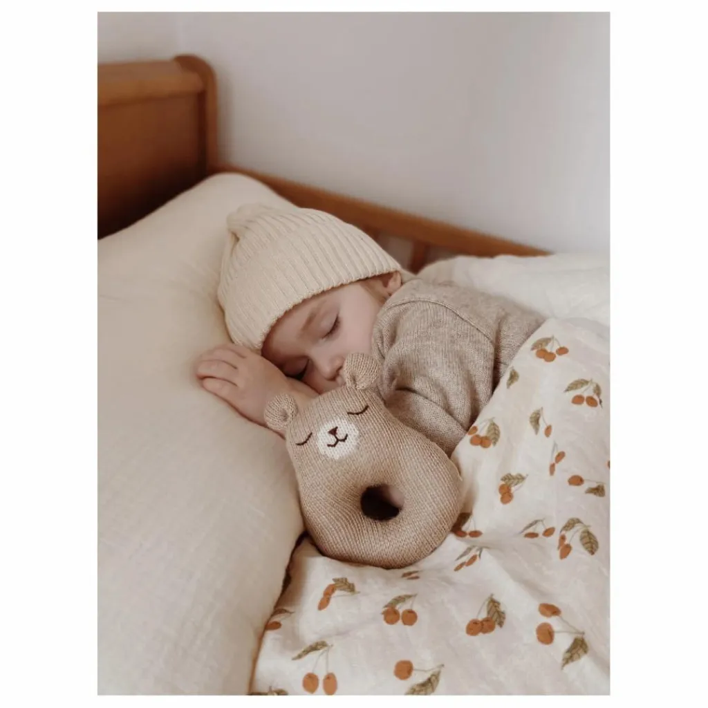 Entièrement tricoté à la main, ce hochet est le cadeau idéal pour une naissance. Sa confection minutieuse participe à préserver des savoir-faire et des techniques respectueuses des humains et de la nature. Il est réalisé en pure laine baby alpaga, une matière anti-bactérienne très douce, particulièrement adaptée aux peaux sensibles.