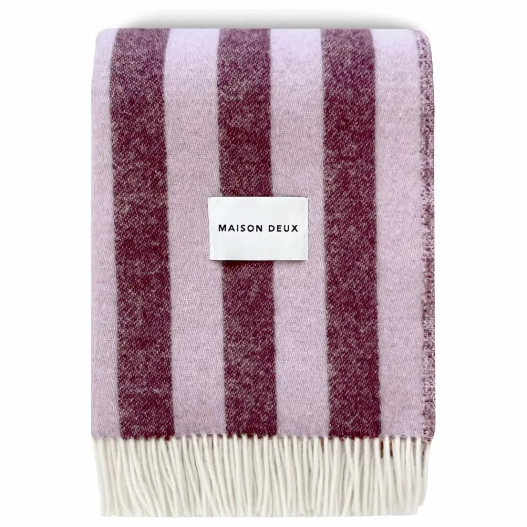 - La couverture Candy Wrap est tissée au jacquard en 100 % laine de Nouvelle-Zélande avec des franges sur les petits côtés. Cette couverture épaisse de qualité supérieure est inversée sur le côté opposé. Dimensions : 130 x 200 cm