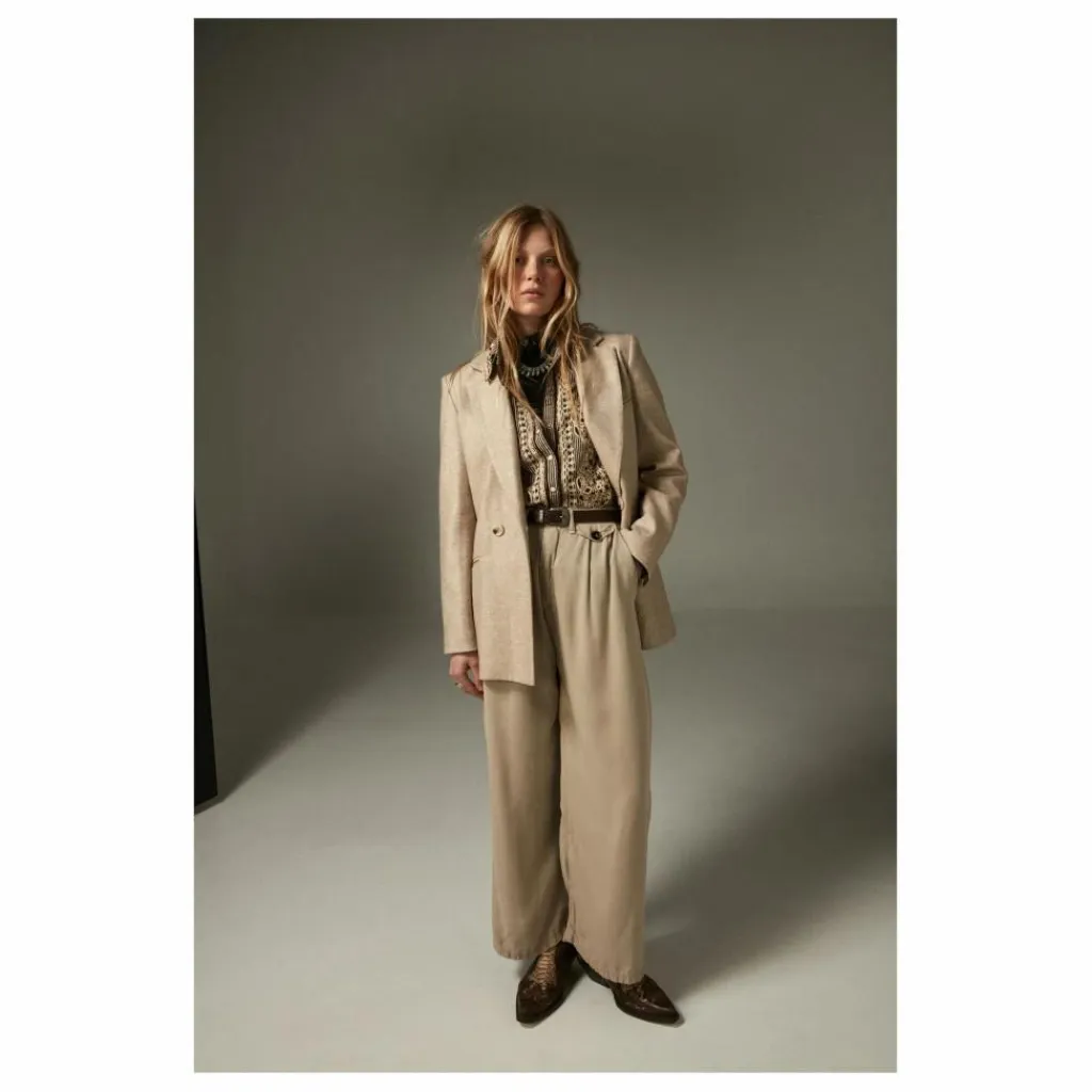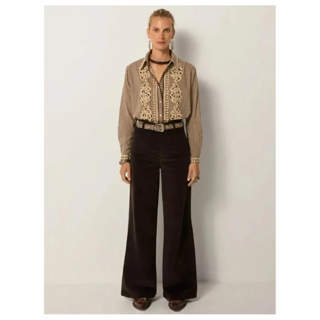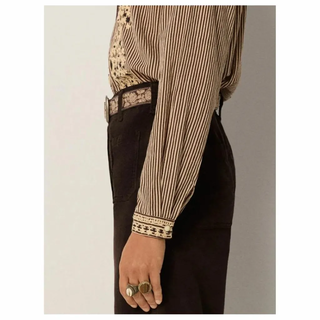 Nous l’avons associé à un pantalon large Romeo en velours boue et à la ceinture Guadalupe — un équilibre entre couture et esprit western.