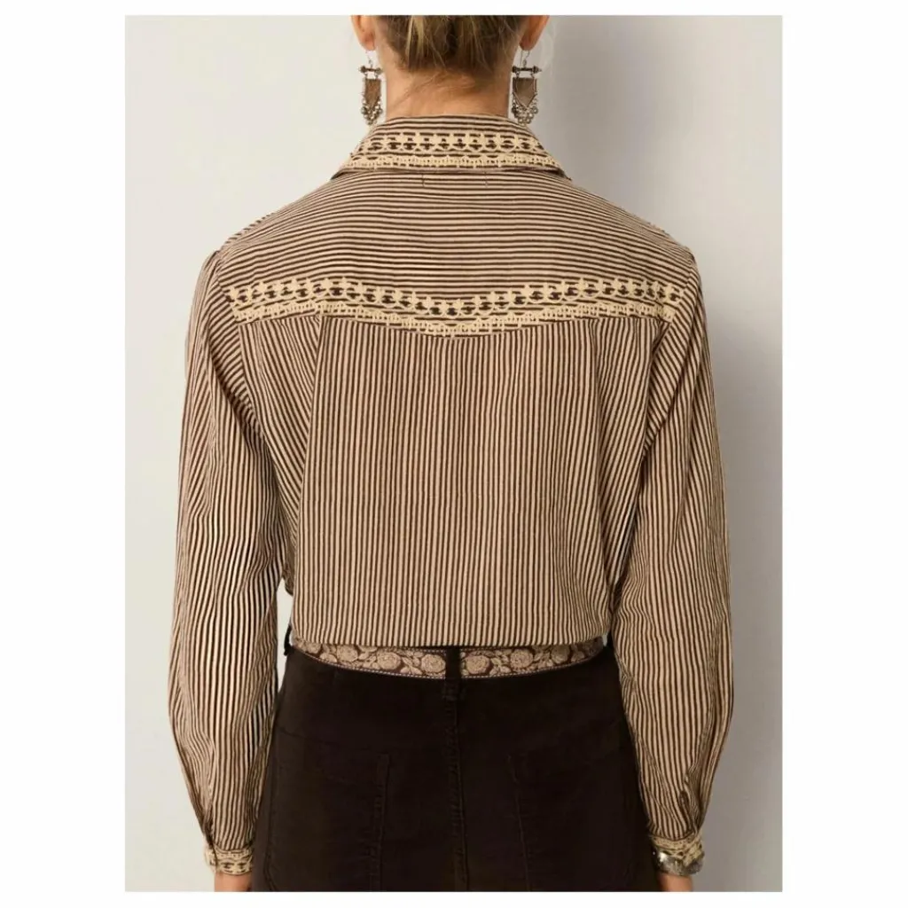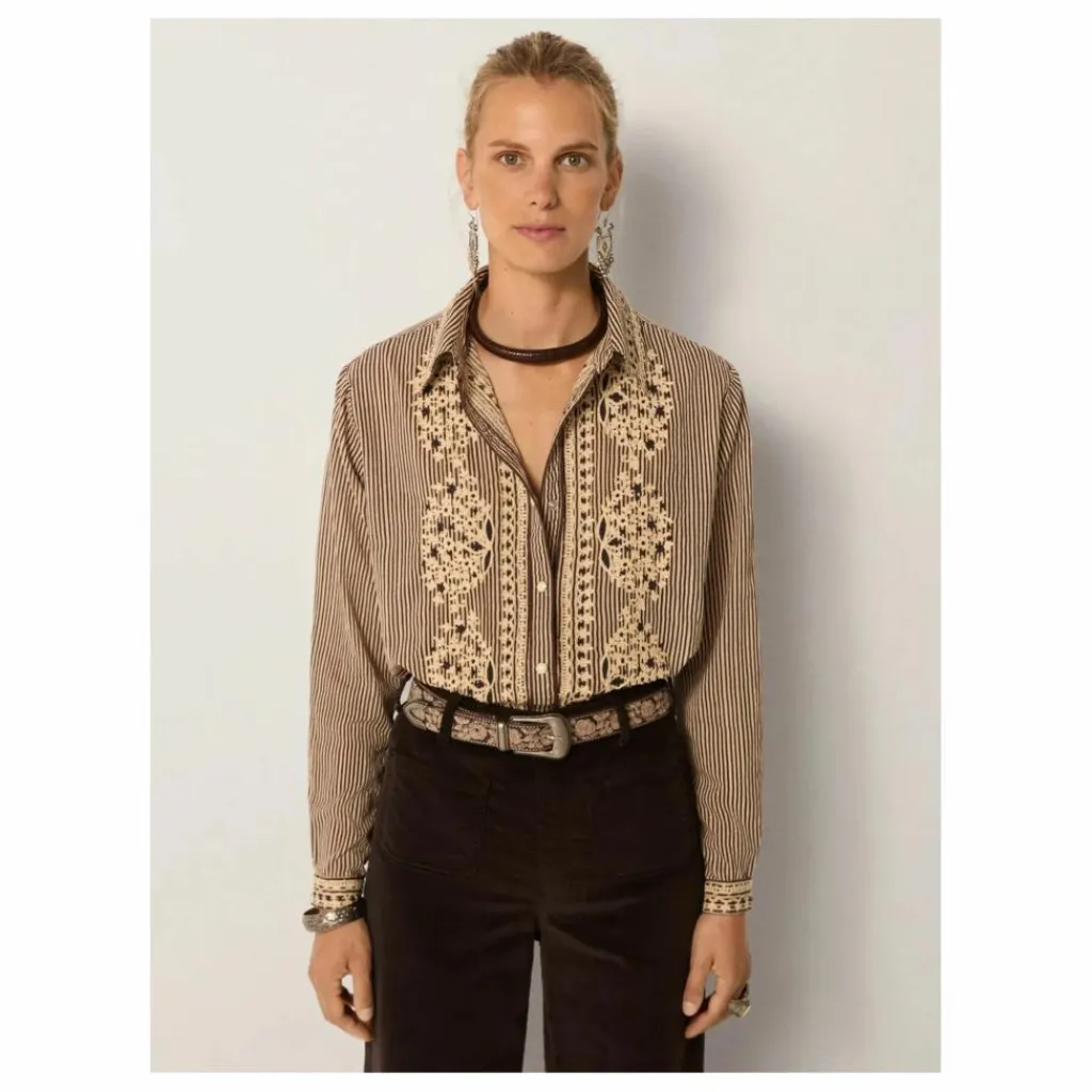 Coton léger, lisse et finement rayé. Son ton tabac chaud est adouci par une texture naturelle.