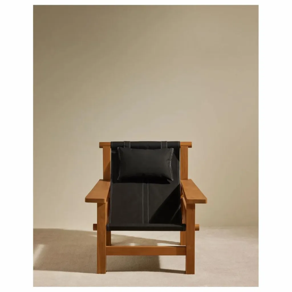 Conçu en bois noble et imputrescible, le teck de Java – label Forêts durables – ce lounge chair arbore une bâche de coton Canvas avec piqure sellier.