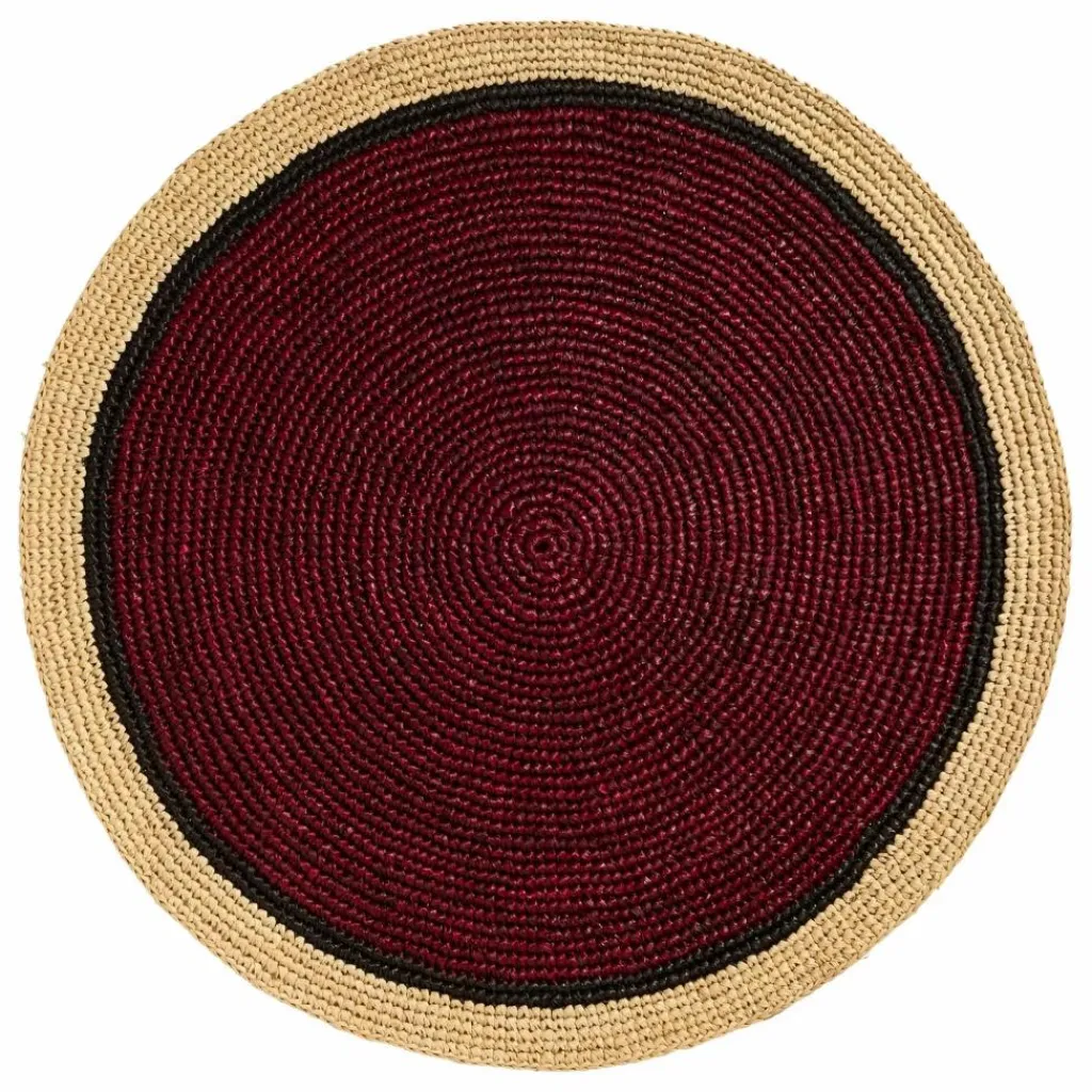La fibre naturelle de raphia est teintée lorsqu’elle est colorée. La teinture peut légèrement décolorer à la lumière, rangez-les à l’abri après usage. - Fabrication : Madagascar