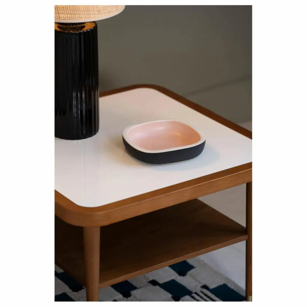 Tout en simplicité, l’assemblage des finitions de couleur et le travail des pieds élancés rendent la table Puzzle unique. Elle s’intègrera parfaitement dans votre intérieur pour créer une ambiance chaleureuse et sophistiquée. L’étagère placée sous le plateau vous permettra de déposer tous vos objets avec style.
