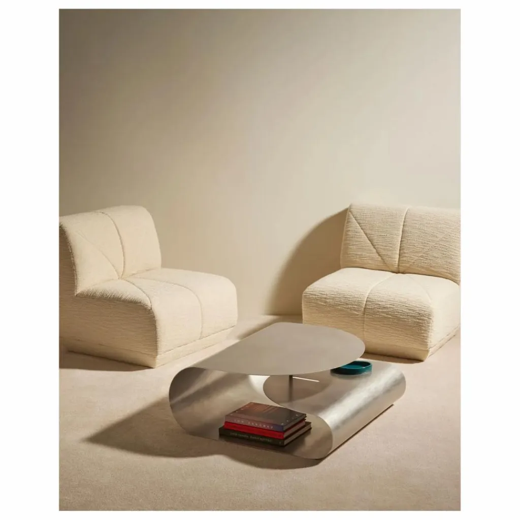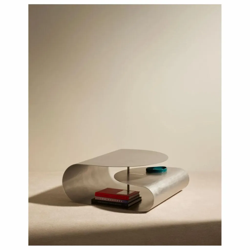 - En volupté. Héritière des premiers travaux du Studio sur lʼacier, la collection Gégé met sur un piédestal la pureté de ce matériau signature. Avec ses volumes généreux et son chassé-croisé harmonieux, la table basse éponyme fait son effet.