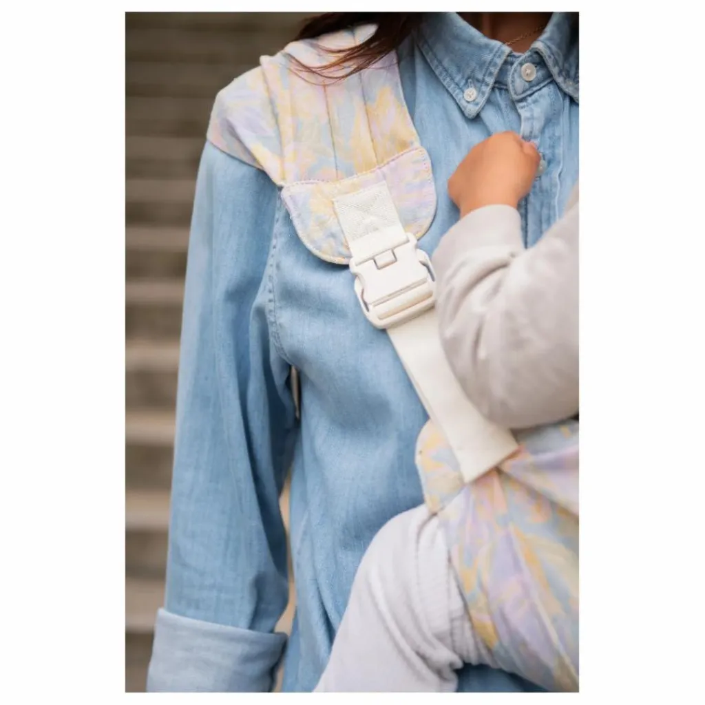 - Une volte déployable sur l’épaule qui apporte une répartition du poids plus équilibrée et un confort absolu au porteur. La conception ergonomique de la volte permet de maintenir votre enfant confortablement tout en évitant les tensions sur le dos et les épaules.