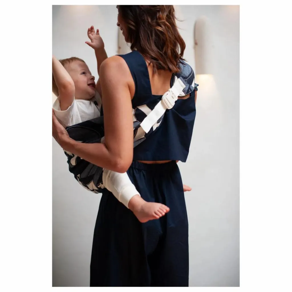 - Une volte déployable sur l’épaule qui apporte une répartition du poids plus équilibrée et un confort absolu au porteur. La conception ergonomique de la volte permet de maintenir votre enfant confortablement tout en évitant les tensions sur le dos et les épaules.