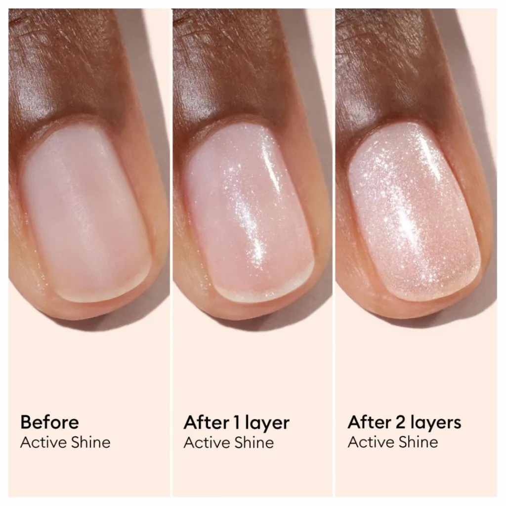 Active Shine est le premier vernis soin highlighter pour les ongles. Avec sa formule bio-sourcée à 79,5% enrichie en extraits de betterave, il hydrate, fortifie et illumine les ongles en un seul geste, offrant un éclat naturel et lumineux.