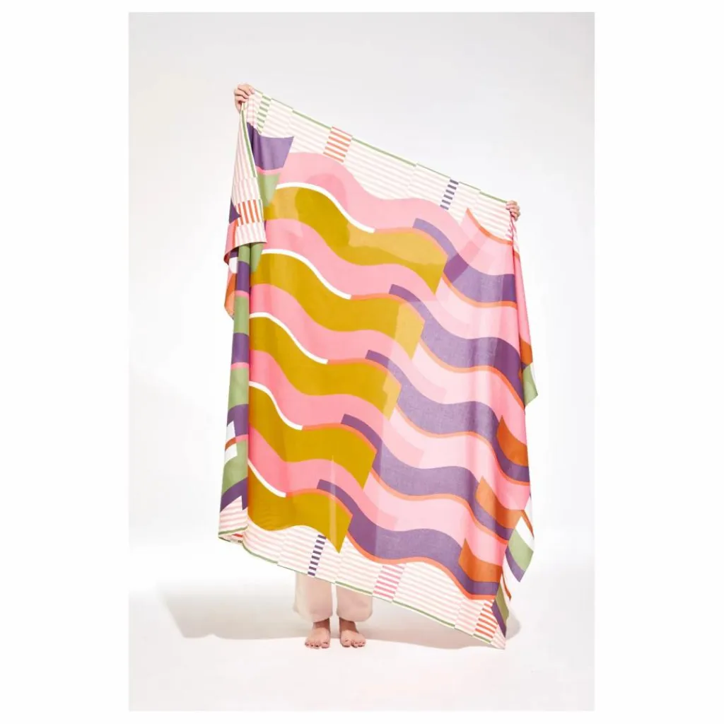 - Ce design Nazaré ondule comme une vague géante sur ce large coton dans lequel vous pouvez faire mille choses: vous drapper, vous enrouler, décorer vos murs tel un tableau ou encore vous allonger sur le sable!