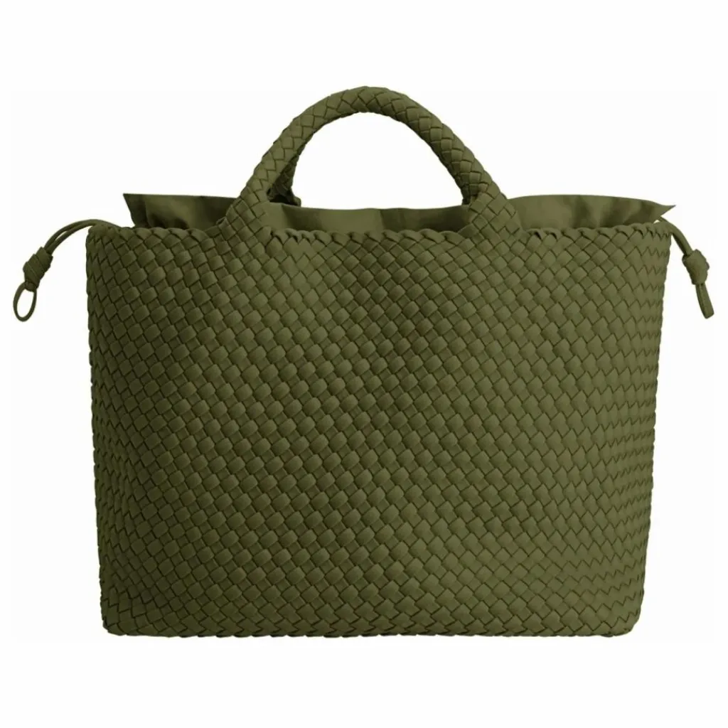 - Tissé à la main en néoprène. 2 poignées supérieures pour le portage à la main, au coude ou à l’épaule. Sac à poussière résistant à l’eau inclus. Matériel de couleur or. Fermeture à crochet + porte-clés. Crochets pour attacher une bandoulière.