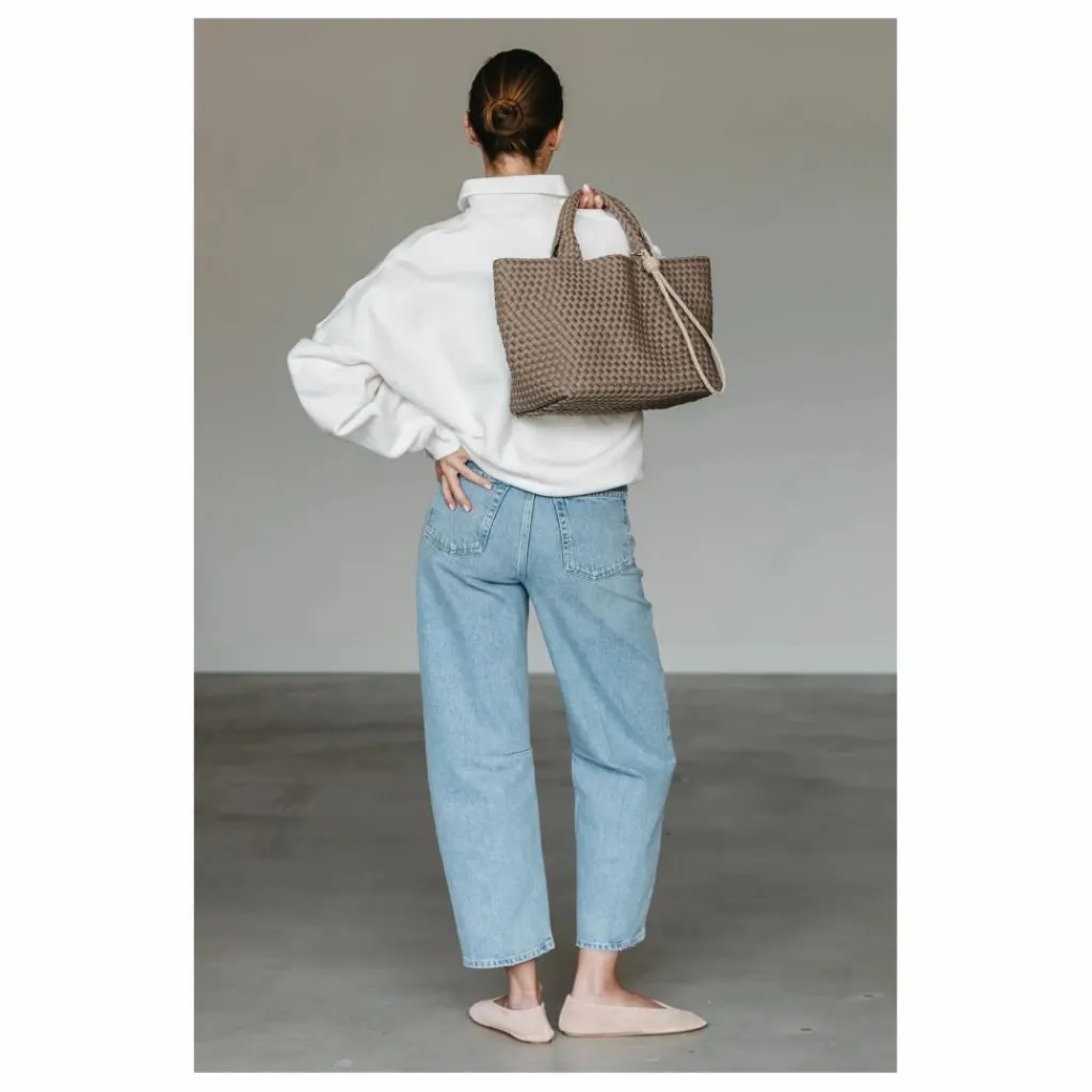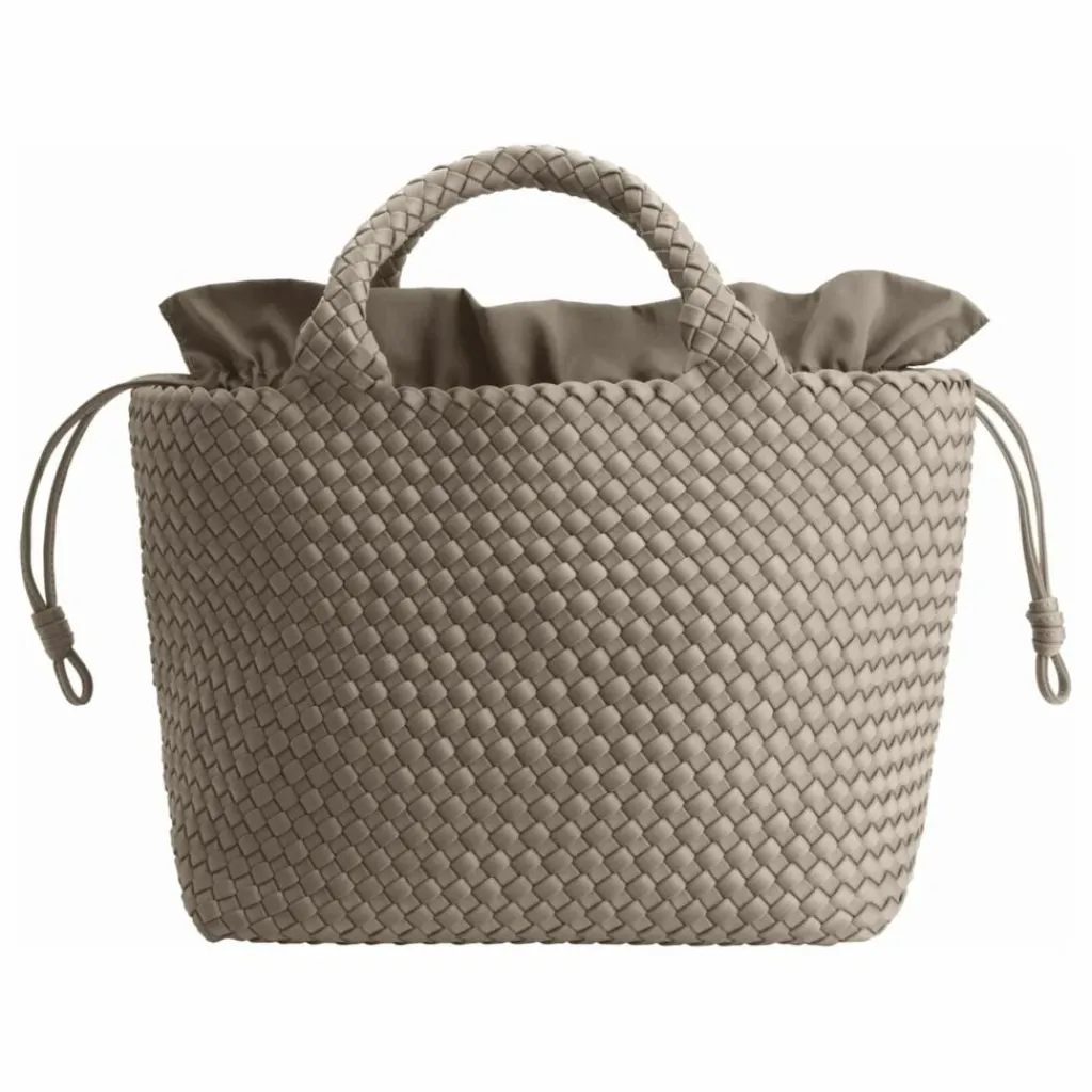 - Tissé à la main en néoprène. 2 poignées supérieures pour le portage à la main, au coude ou à l’épaule. Sac à poussière résistant à l’eau inclus. Matériel de couleur dorée. Fermeture à crochet + porte-clés. Crochets pour attacher une bandoulière.