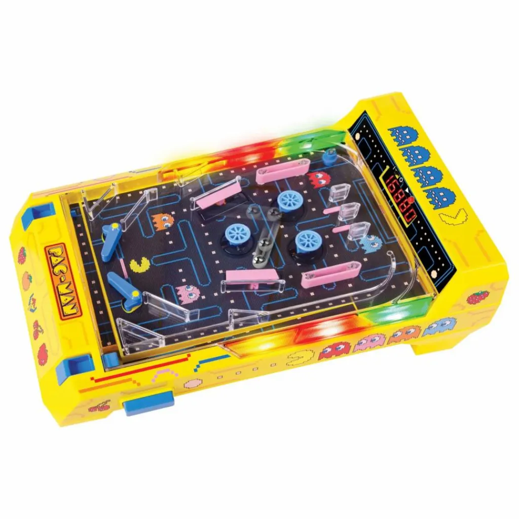 - Plongez dans l’univers rétro de PAC-MAN avec ce flipper électronique vibrant et lumineux. Entre sons d’arcade authentiques, cibles lumineuses et mécanismes dynamiques, chaque partie offre un vrai shoot de nostalgie et d’action. Compact mais ultra-immersif, ce flipper transforme n’importe quel bureau ou chambre en mini salle d’arcade. Idéal pour les fans de PAC-MAN et les amateurs de jeux rétro.