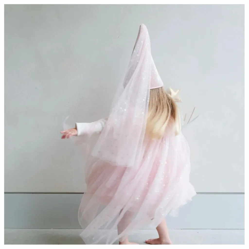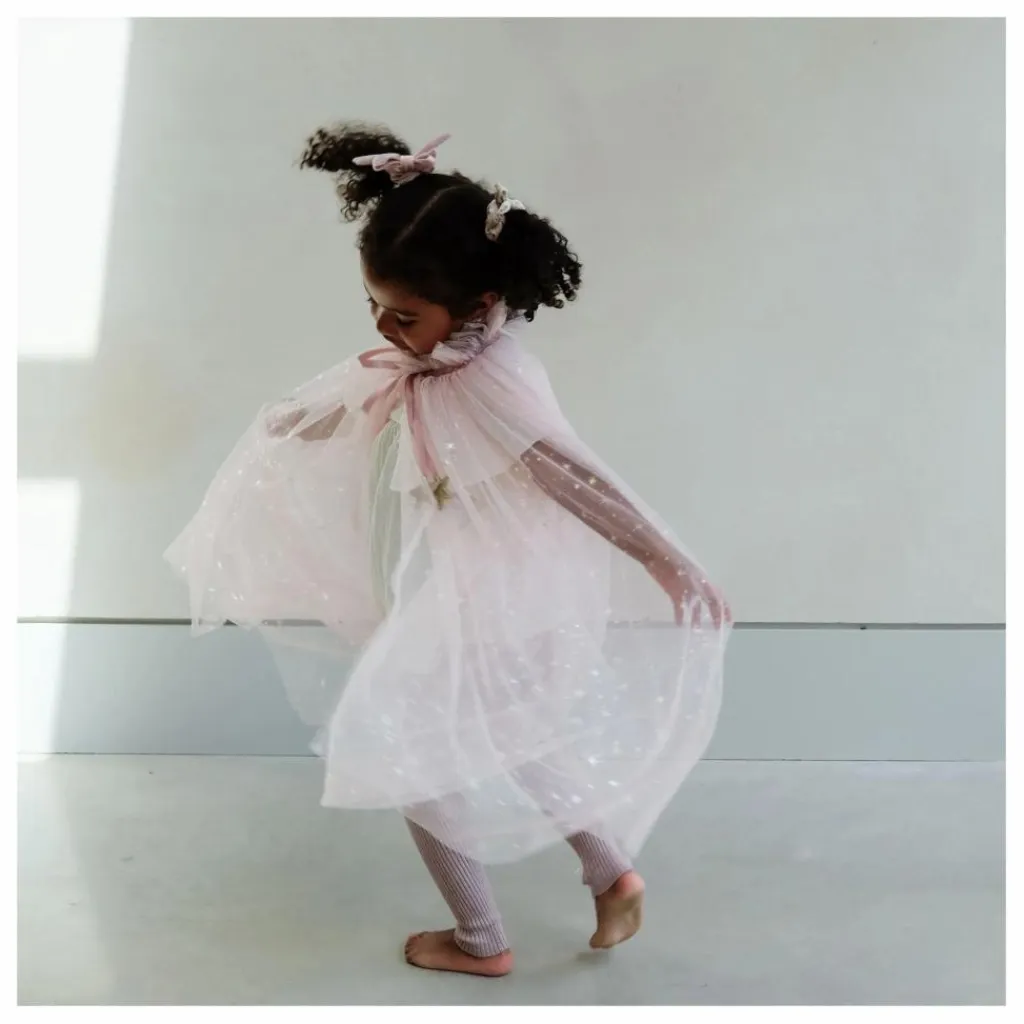 - Scintillez et entrez dans un monde d’enchantement avec notre cape de princesse Shimmer ! Fabriquée dans un tulle rose très doux et parsemée d’étoiles scintillantes, elle est parfaite pour ajouter une touche de charme féerique à n’importe quel déguisement. Associez-la à notre chapeau de princesse ou à notre tutu pour un look complet !