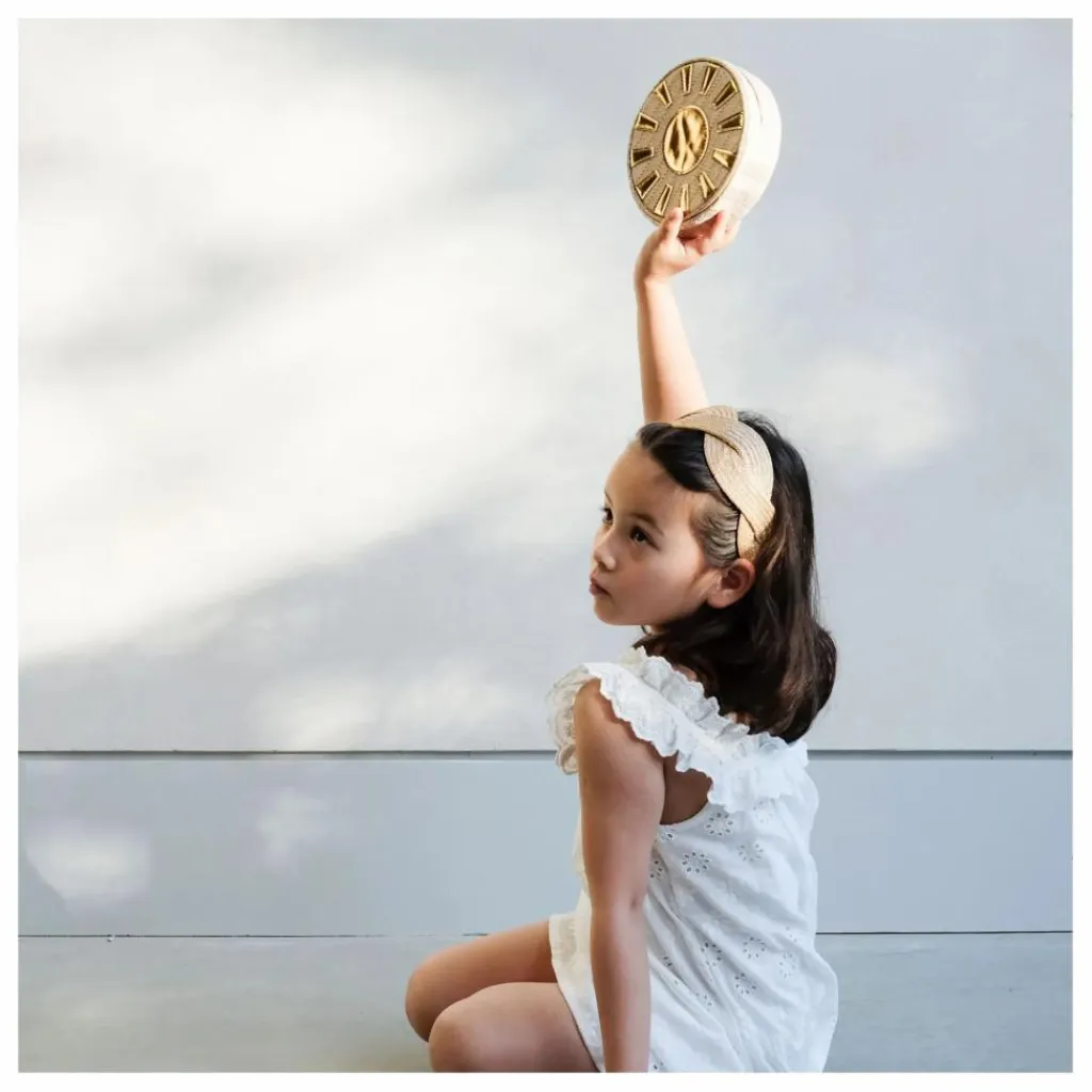 - Ce joyeux sac Sunshine est le partenaire idéal pour les jours les plus chauds ! Ce sac circulaire en 3D est fabriqué à partir d’un tissu de type raphia et est orné d’un soleil métallique doré brillant. Fermeture à glissière Courroie neutre en similicuir – longueur approx. 48 cm Attention ! Ne convient pas aux enfants de moins de 36 mois