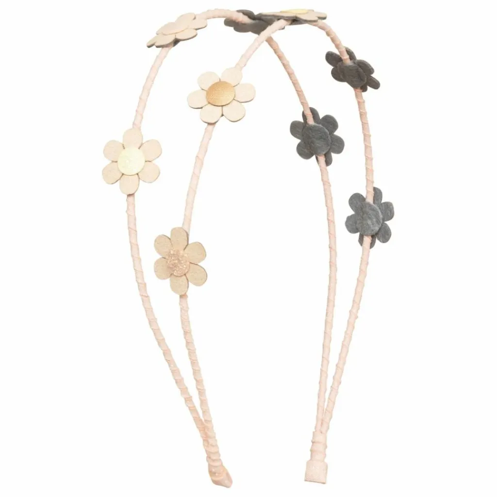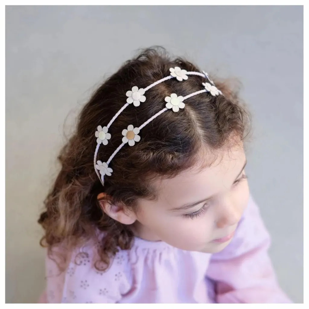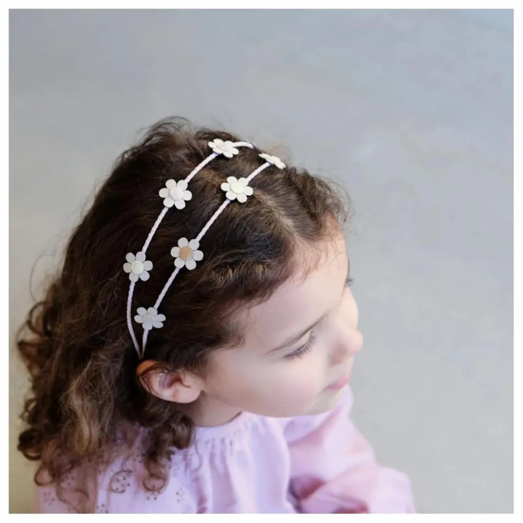- Les marguerites sont fabriquées en tissu suédé crème avec des centres pailletés et métalliques. Attention ! Ne convient pas aux enfants de moins de 36 mois