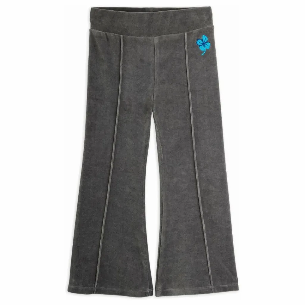 - Soft velour trousers with a embroidered clover