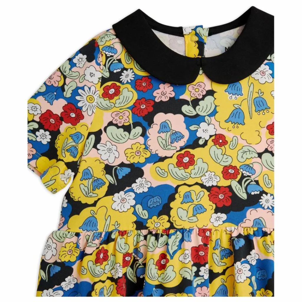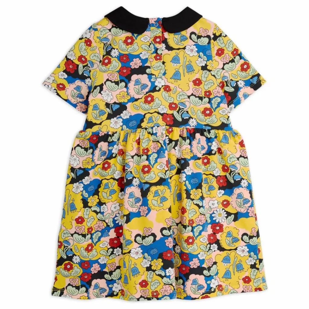 - Robe à manches courtes en coton biologique certifié GOTS avec un soupçon d’élasticité, imprimée de fleurs sur tout le corps. Conçue avec des manches courtes, un col arrondi, une taille haute et une jupe évasée. Décorée de boutons dans le dos pour faciliter l’habillage.