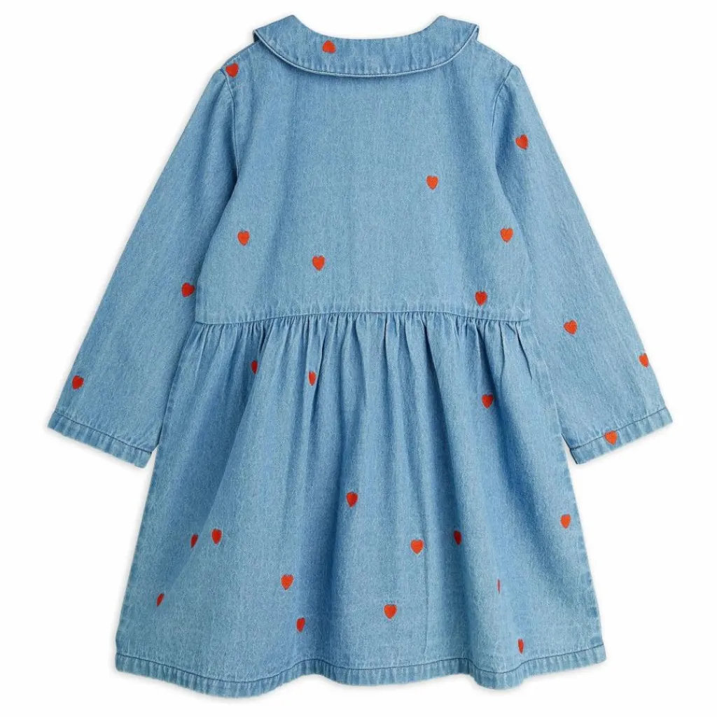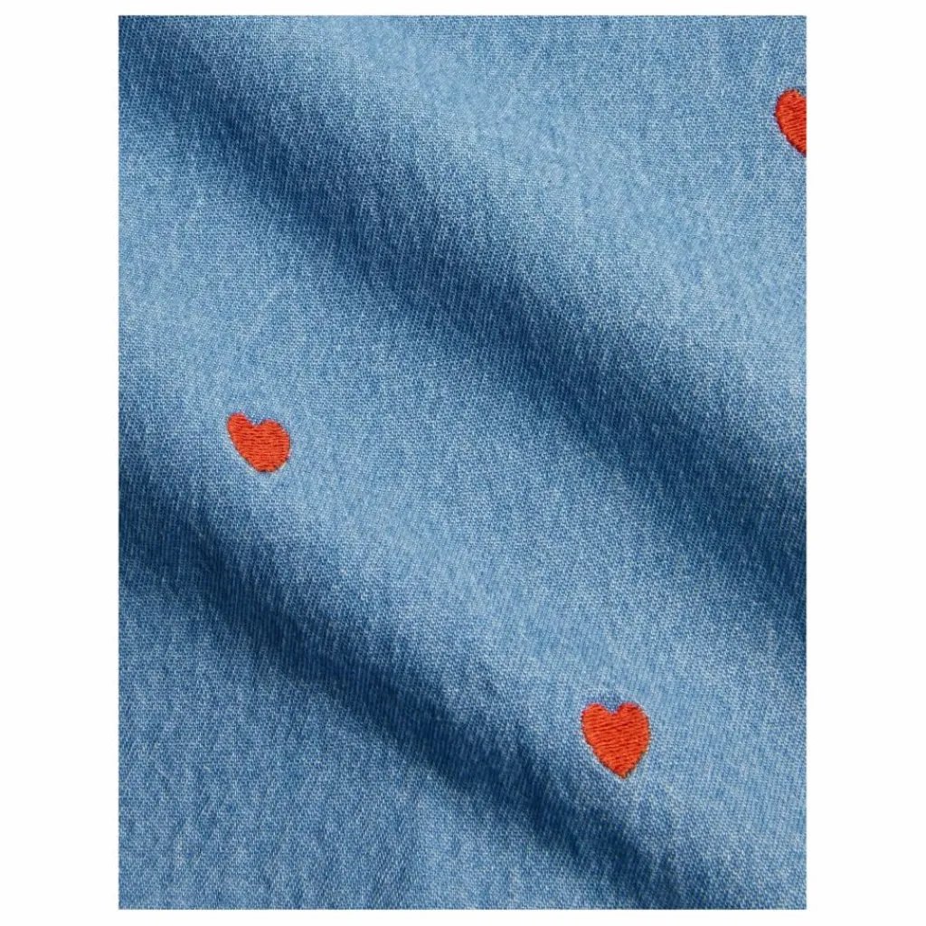 - Robe en denim léger avec mini-cœurs rouges brodés