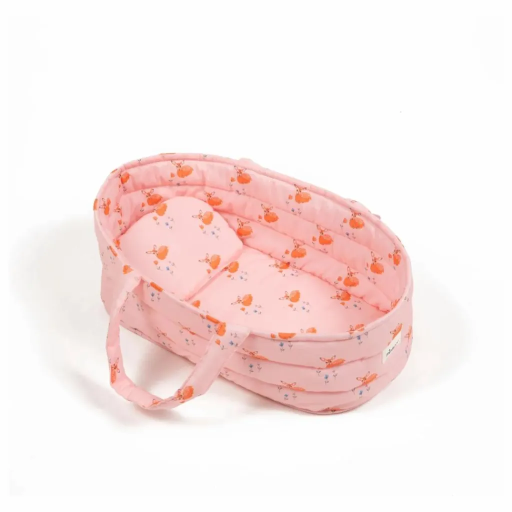 - Couffin et son oreiller en coton ouatiné avec anses pour poupées et poupons Minikane Cuties 36cm, Gordis 34cm et Babies 28cm.