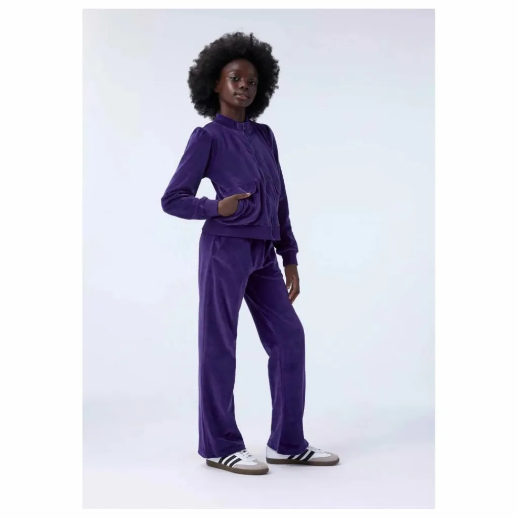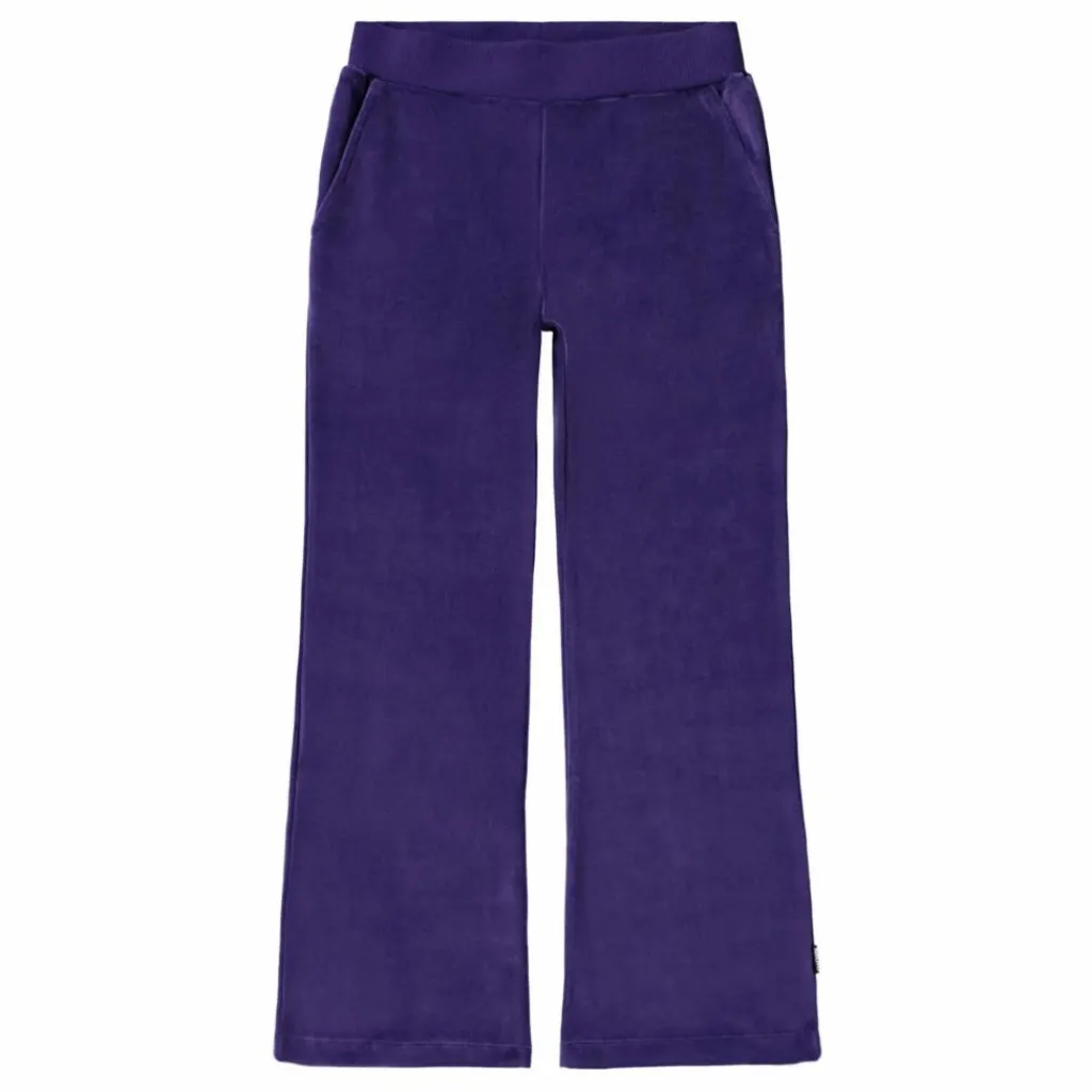 - Ce pantalon en velours violet de Molo est fabriqué dans un mélange de coton doux et présente une forme trompette. Le pantalon est doté d’une large ceinture élastique avec un cordon de serrage interne, ce qui le rend facile à enfiler et confortable à porter. Parfait pour les enfants qui veulent un look doux et sportif.