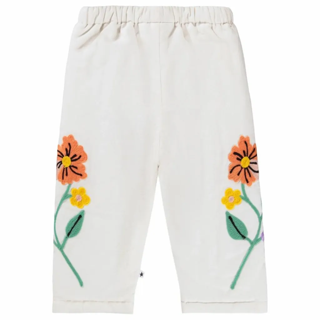 - Ce pantalon blanc de Molo est confectionné en coton doux et présente une taille élastique ainsi qu’une belle broderie de grandes fleurs sur les côtés de la jambe.