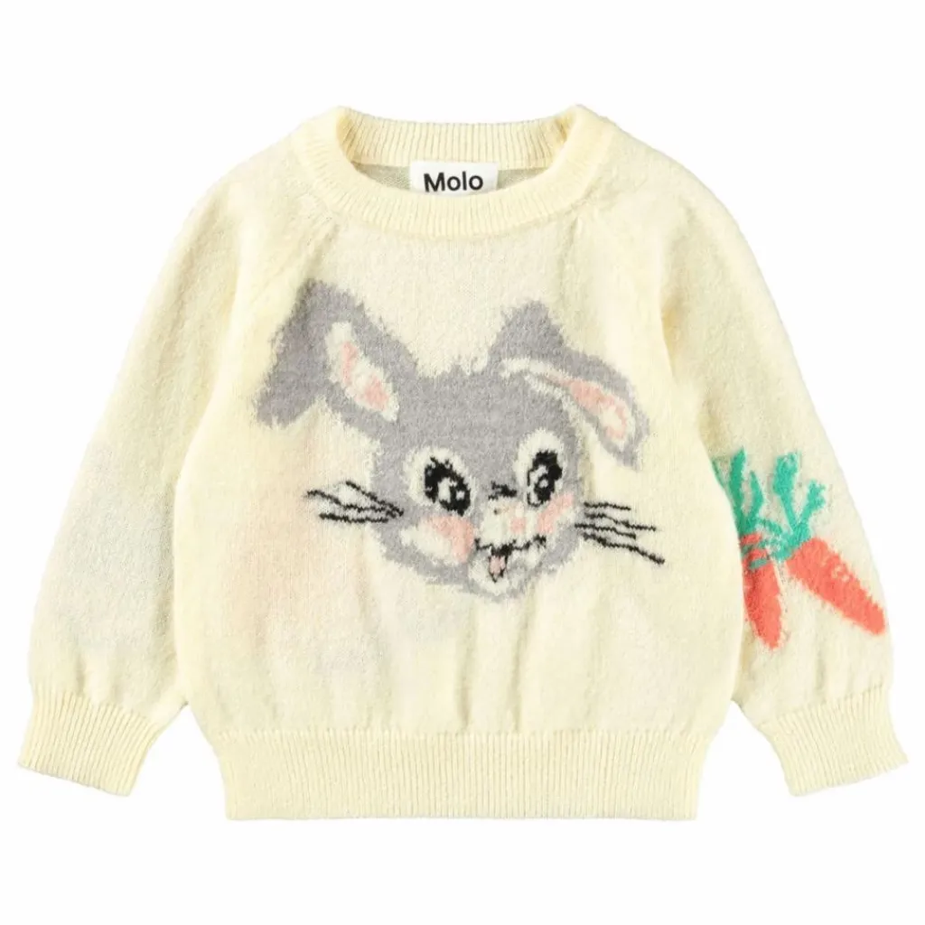 - Ce pull-over jaune clair de Molo est fabriqué en jersey de coton biologique et présente un imprimé d’animaux et de légumes. Le pull a des manches raglan et des bords côtelés au niveau du col, des manches et de l’ourlet.