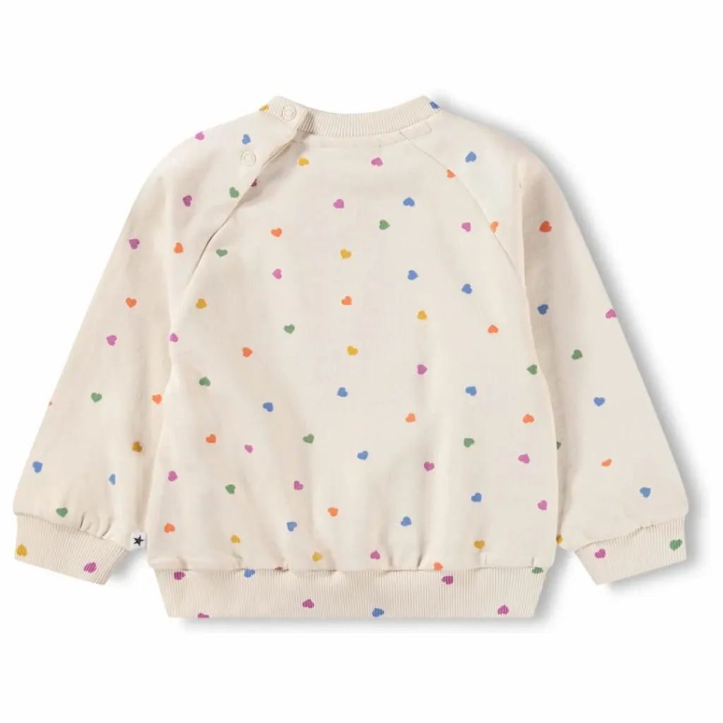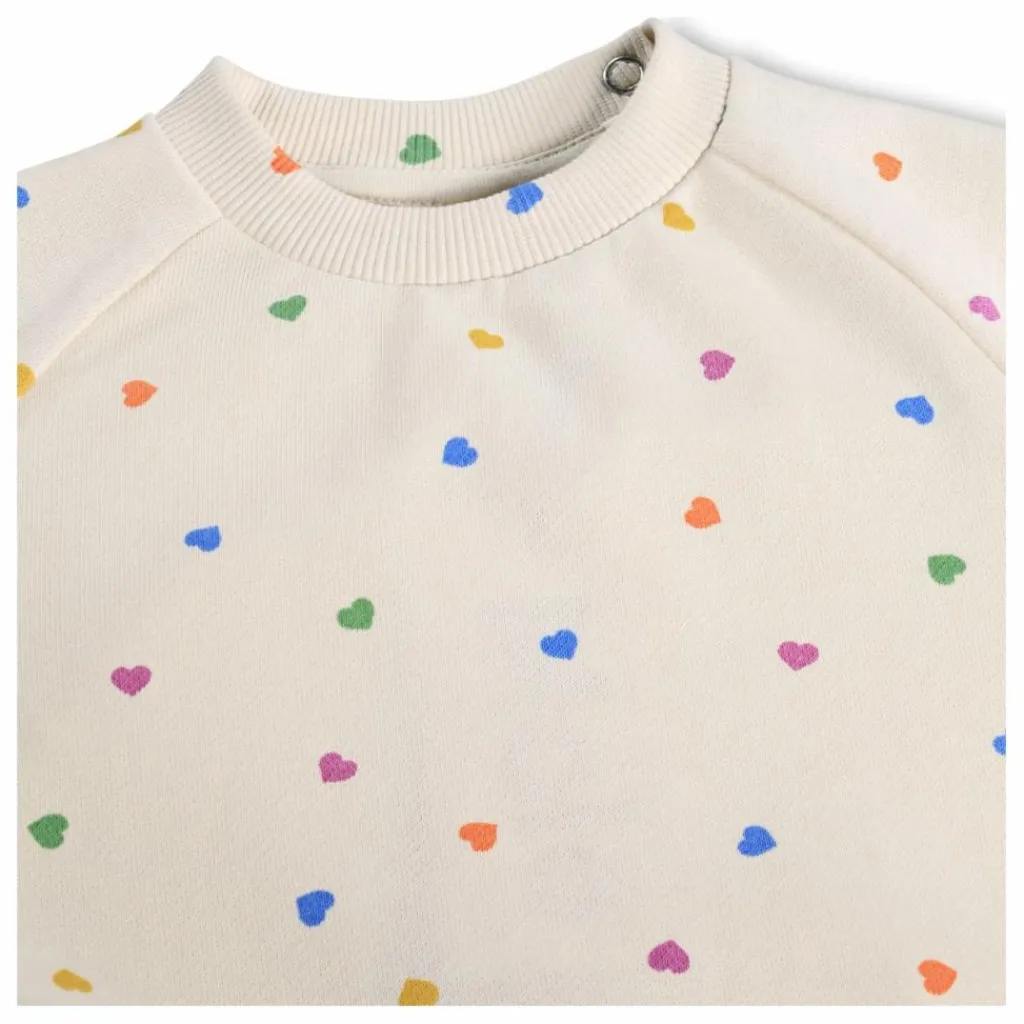 - Ce sweat-shirt doux est parfait pour les petits et a été conçu pour être confortable et facile à porter. Doté de manches raglan et de bords côtelés, il présente une encolure ronde et des boutons-pression pratiques dans le dos, ce qui facilite l’habillage. L’imprimé ludique en forme de cœur ajoute une touche charmante que parents et enfants adoreront, pour que votre enfant ait du style et se sente bien au chaud.