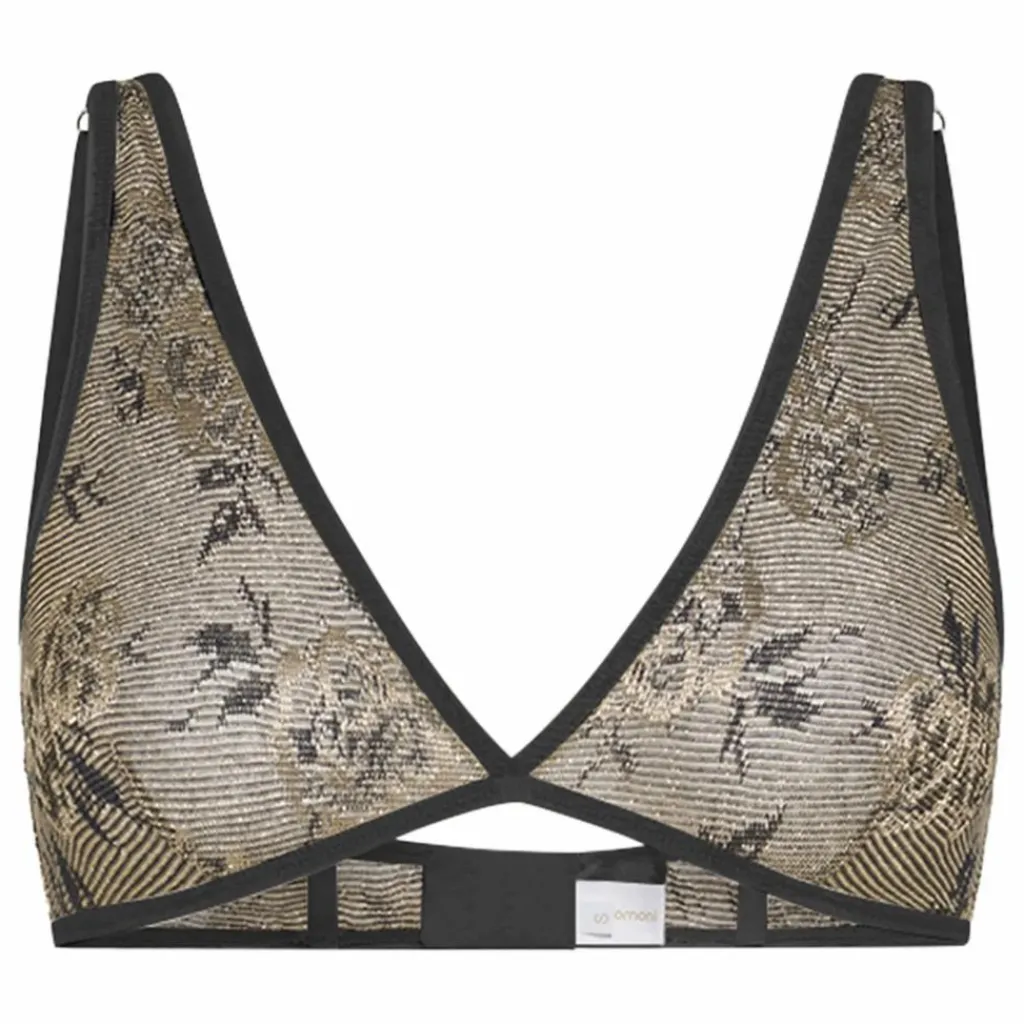 - Soutien-gorge triangulaire à large épaule en jersey jaquard lurex stretch avec bord élastique contrastant. Bandoulière élastique avec régulateurs à l’arrière et fermeture par crochets. Made in Italy.