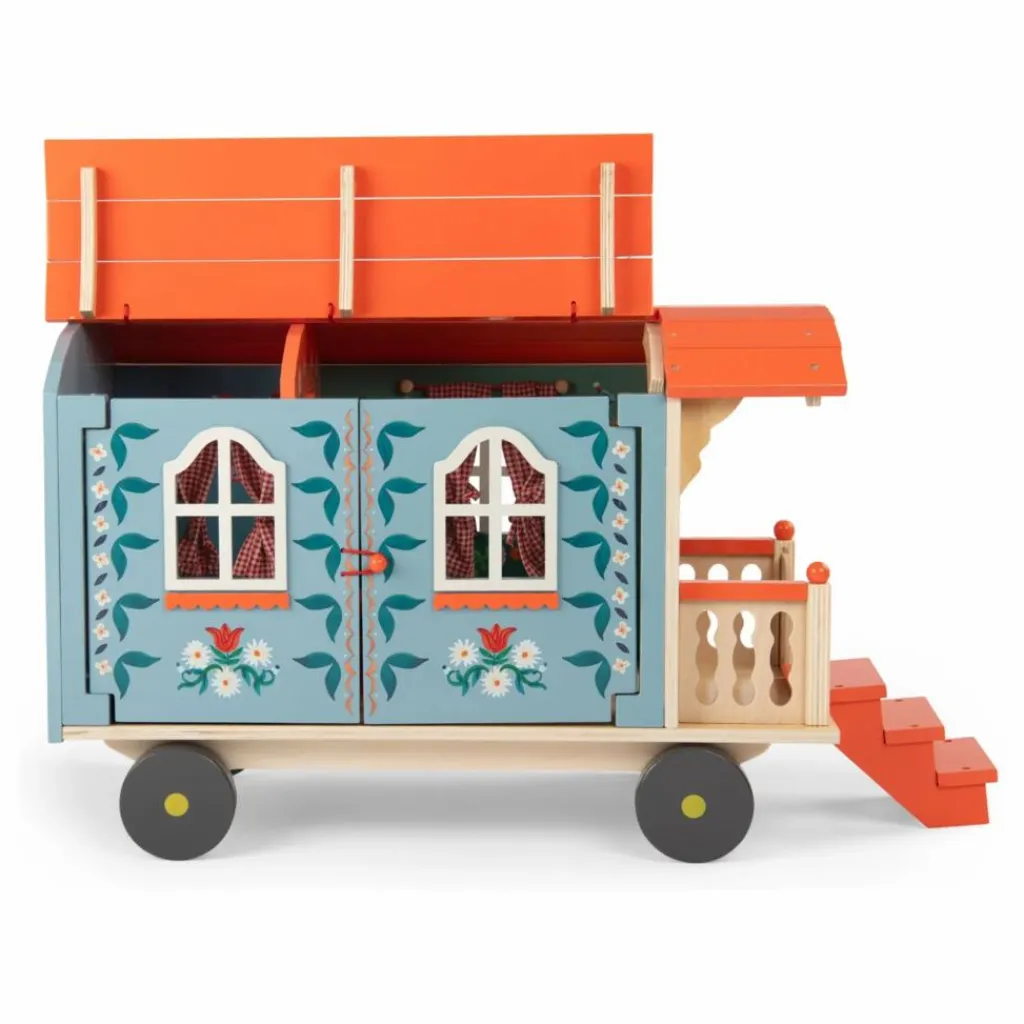 - Ce soir tout le monde se retrouve dans la roulotte en bois de Baba ! Rita apporte des petites crêpes au sucre, Léon ses livres d’aventures, Nine son tricot… voilà une belle soirée d’été qui commence ! Personnages vendus séparément.