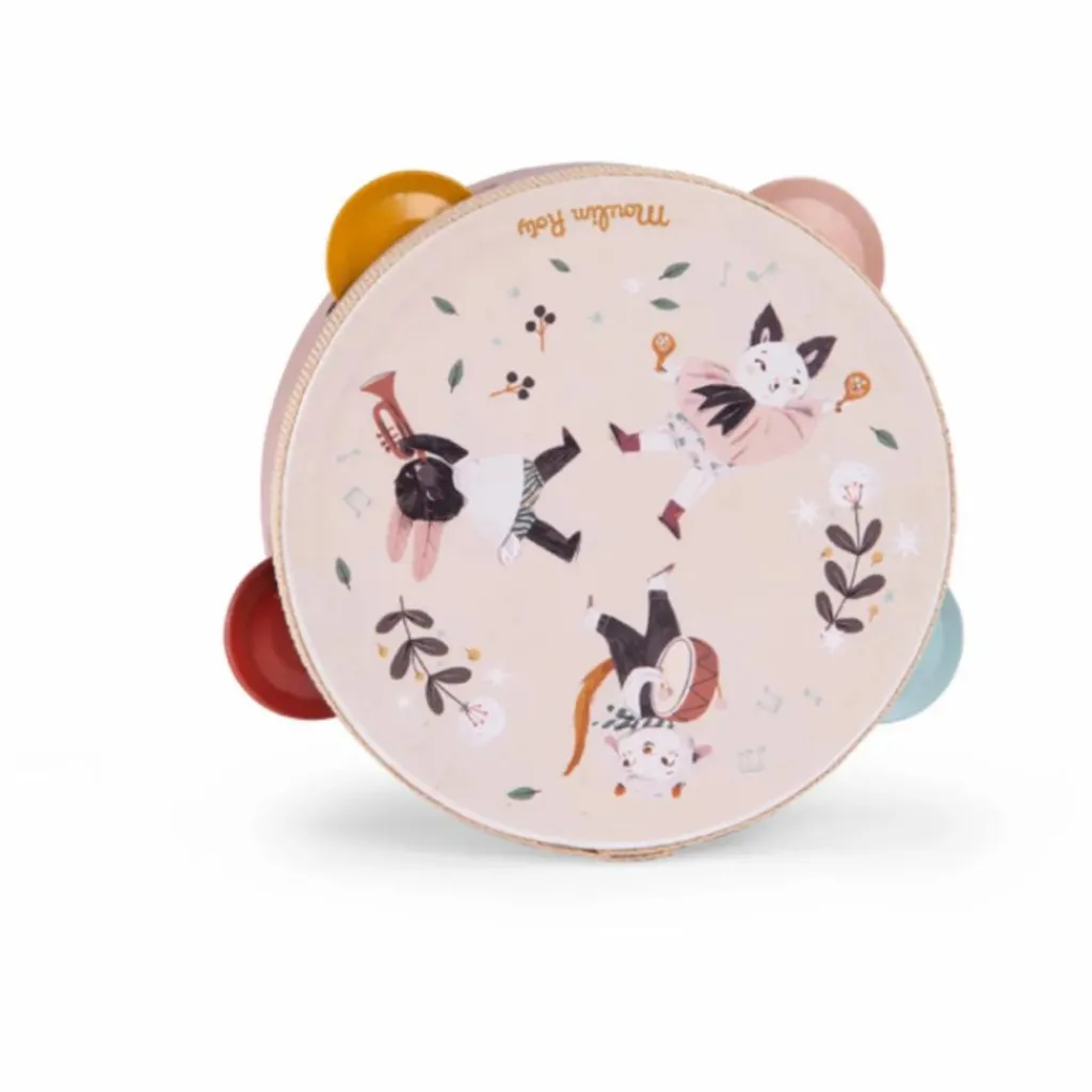 Voici un tambourin doté de 4 cymbales en bois peint, agrémenté des illustrations poétiques de la collection « Après la pluie ». Cet instrument stimulant développe le sens du rythme et l’éveil musical des tout-petits. Facile à utiliser, il permet aux enfants de s’amuser et de participer activement à la musique dès leur plus jeune âge.