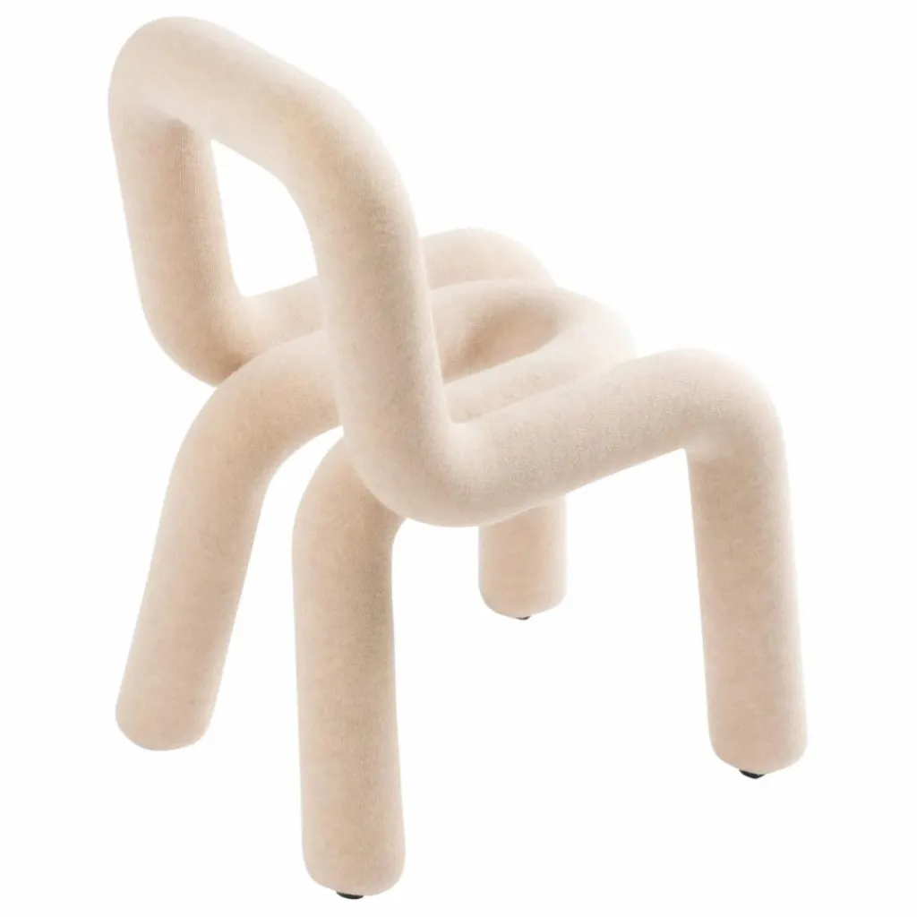 Création du collectif Big Game, la chaise bold est inspirée de la tradition de la chaise avec tube d’acier habituellement simplement utilisé pour le piètement. Ici tout en tube d’acier, la chaise est épaissie par un effet de rembourrage en mousse qui lui apporte un confort extrême. Ludique et graphique, elle se compose de deux parties tubulaires simplement imbriquées l’une dans l’autre, apportant un style à la fois épuré et fantasque.