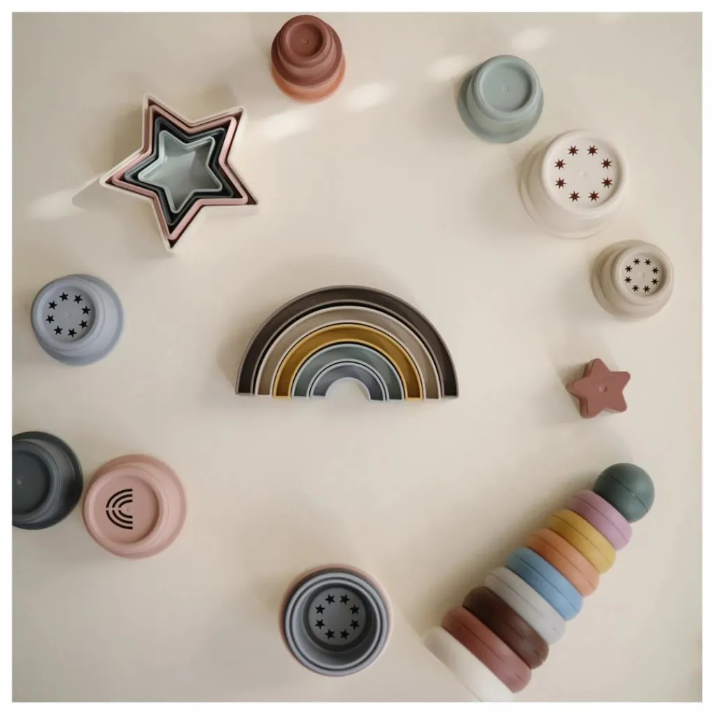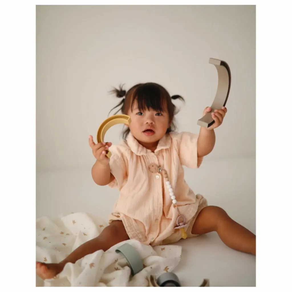Inspiré par le skywalk arc-en-ciel à Aarhus, au Danemark, ce jouet ludique et design permettra aux tout-petits de trier, empiler et jouer avec ce bel ensemble aux couleurs douces.
