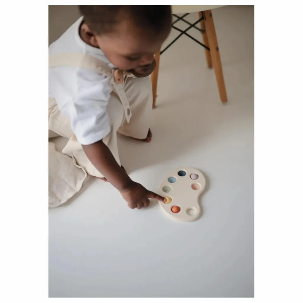 Grâce ce jouet Pop it palette de peinture, votre enfant apprendra en appuyant sur les bulles et en entendant un léger pop. Ce jouet est inspiré des arts et de l’artisanat et retient l’attention des bébés et des enfants plus âgés avec des possibilités de jeu infinies