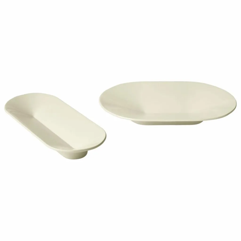 Le plat Mere est une pièce maîtresse sculpturale qui s’intègre parfaitement dans un décor de table ou un espace, qu’il soit utilisé ou non. Sa forme caractéristique est à la fois simple et ingénieuse, puisqu’une ligne au milieu se replie sur les côtés pour former un bol. Surélevé par un pied discret, il semble flotter.