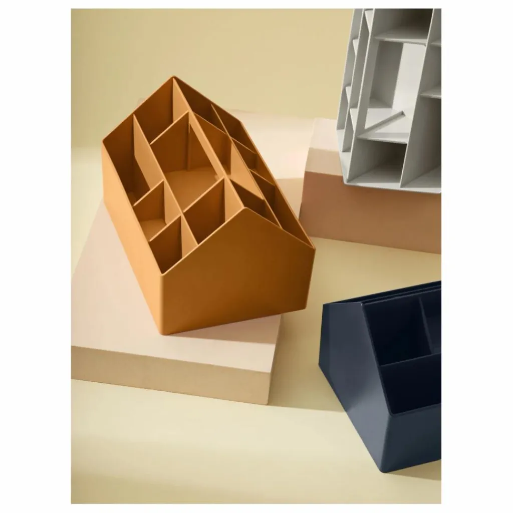 Le design simple et fonctionnel de la boîte de rangement Sketch fait référence aux lignes architecturales d’une maison. Moulée en une seule pièce monolithique avec une poignée pour la portabilité, elle offre plusieurs petits rangements. Fabriquée en plastique recyclé, elle est idéale pour tous les espaces de bureau, à la maison ou sur un lieu de travail nomade.