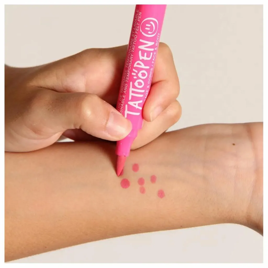 Totalement inédit : découvrez le concept TATTOOPEN, une aventure créative à vivre en famille ou entre copains ! Ce feutre permet de réaliser des tatouages temporaires lavables sur le visage et sur le corps.
