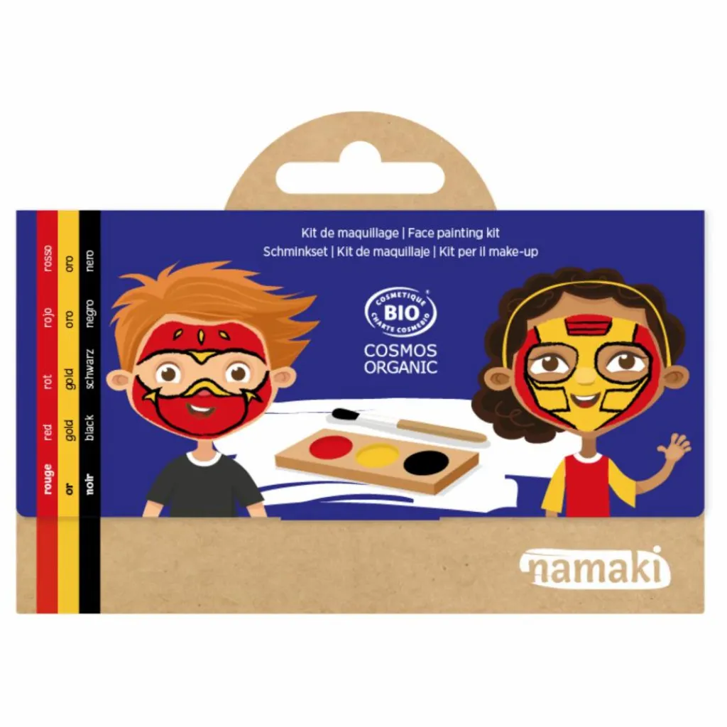 - Conseils d’utilisation : Le maquillage s’utilise avec de l’eau et s’applique sur la peau à l’aide du pinceau. Le démaquillage s’effectue facilement avec de l’eau tiède et un peu de savon. Après utilisation, laissez sécher le pinceau et la palette de fards avant de les ranger dans la boîte.