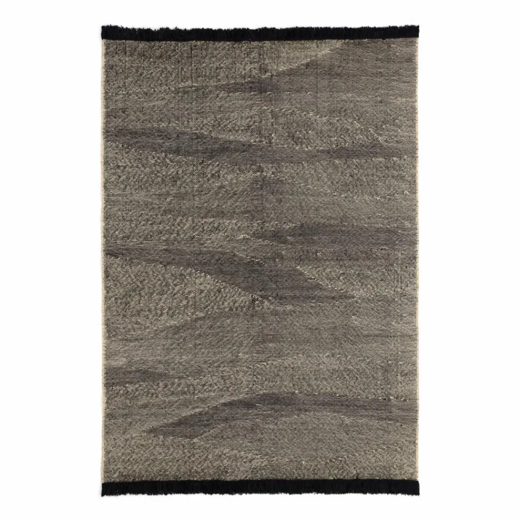 Les modifications du motif, qui naissent de la tension appliquée entre la trame et la chaîne, laissent apparaître un tapis plein de nuances, évoquant ainsi le travail manuel primaire: des essais et des erreurs de l’artisan dont découleraient des résultats magiques.