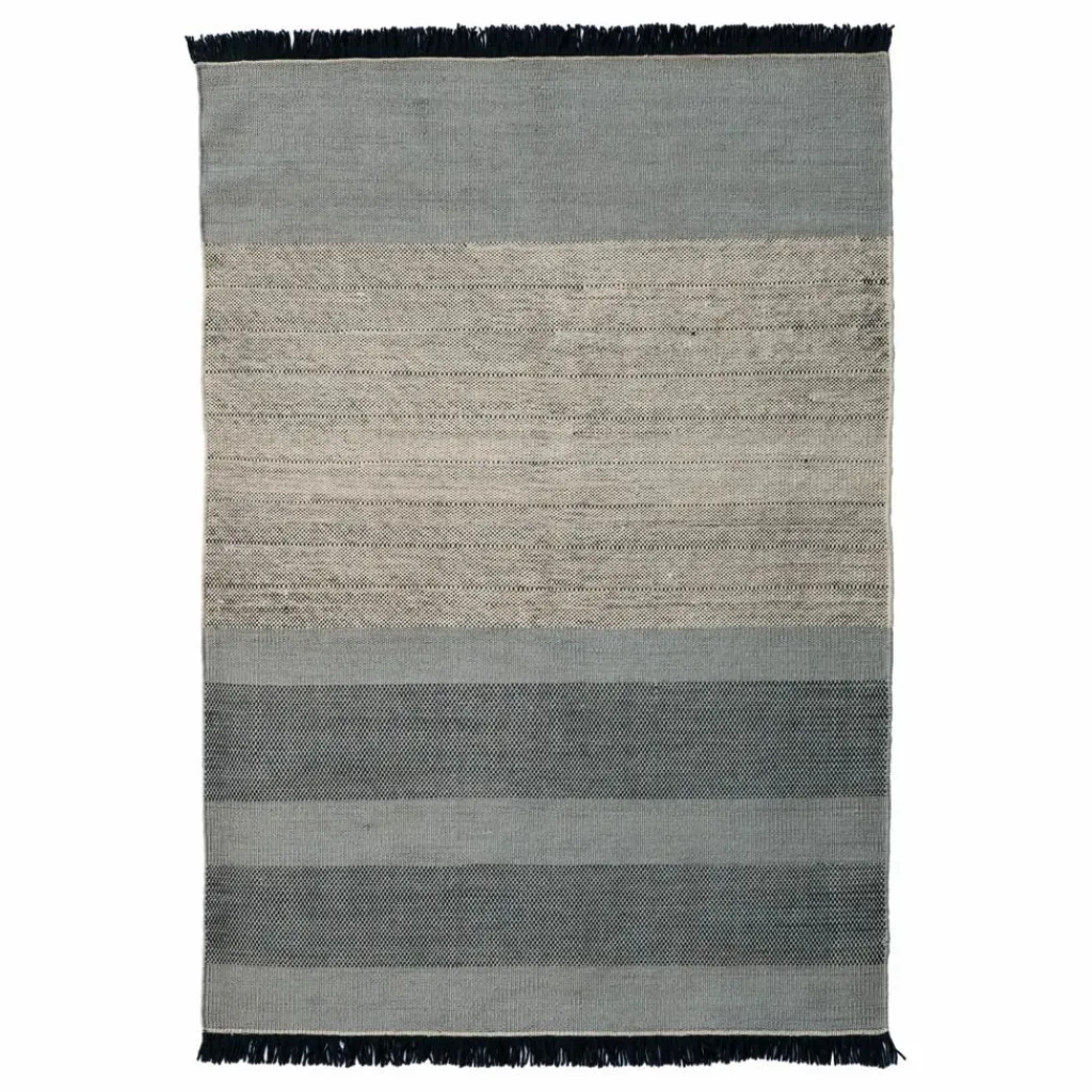 Tres est un tapis indien traditionnel à tissage plat Dhurrie. Sa qualité unique réside dans la production de trois pièces indépendantes dans lesquelles différentes fibres prédominent.La proportion et la combinaison de laine, de feutre et de coton génèrent des changements de tons et d’irrégularités dans le tissage, donnant vie au motif.