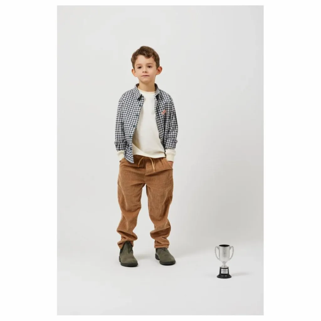 - Pantalon en velours cotele . – Velours en coton organique certifie GOTS. – Taille elastiquee avec cordon de serrage. – Poches aux cotes devant. – Coupe regular. – Poches plaquees au dos avec etiquette « AP & CO ». – etiquette petit drapeau cousue a la poche devant. – Existe en coloris ecru, bubble gum, navy, beige et kaki. – H25GP01