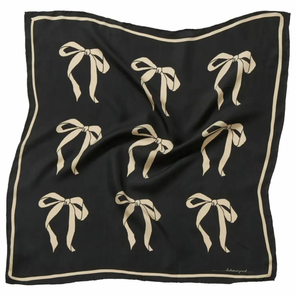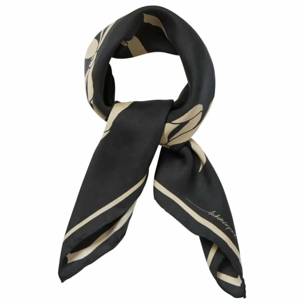 - L’écharpe Bow Twill Sia, créée par Becksöndergaard, est composée à 100 % de soie et mesure 65 x 65 cm. L’écharpe existe en deux couleurs différentes et est ornée des plus beaux nœuds. Il peut être porté dans les cheveux, autour du cou ou à la bandoulière de votre sac. À vous de choisir !