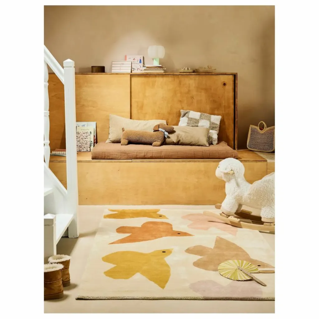 - Au début, il est possible que de petits excès de coton bio partent du tapis (on dit que le tapis « débourre »). En aspirant doucement et régulièrement, ces « bourres » vont disparaitre.