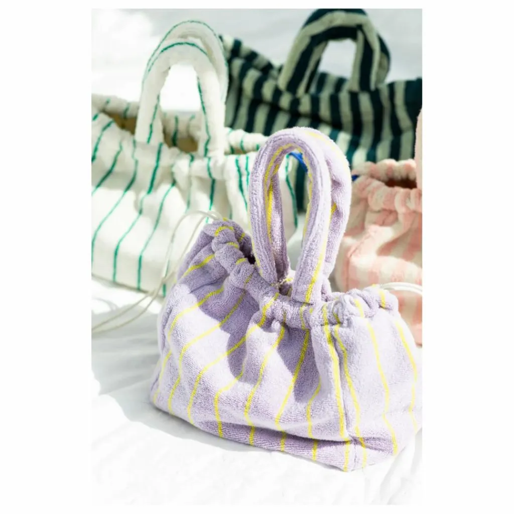 - Conçu avec une silhouette douce et déstructurée, notre sac à main Naram est fabriqué en tissu éponge léger et certifié OEKO-TEX®. Il est disponible dans nos couleurs Bongusta et nos rayures classiques. Disponible dans toute la gamme/toutes les combinaisons de couleurs. Le sac à main Naram est doté d’une poignée courte et d’un haut ouvert et froncé avec des cordons élastiques colorés, qui permettent de serrer le sac sans effort en tirant simplement sur les cordons, ce qui donne un effet de fermeture joliment ébouriffé. Les cordons élastiques sont disponibles dans des tons captivants de bleu ou de crème. Le sac est doté d’un seul compartiment ouvert et d’une large base. Il peut contenir de petites choses comme un portefeuille, des clés, de la lotion pour les mains, etc. Portez-le à la main ou en bandoulière. 100% coton peigné (600 g/m²)Tissage double filCertifié OEKO-TEX®Combinaisons de couleurs vivesRayons horizontauxCompartiment unique Cordons de serrage élastiques Longueur 30 cm. Hauteur 24 cm. Largeur 18 cm.