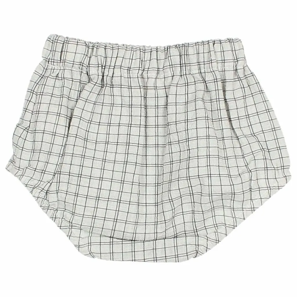 - Mini culotte bouffante à carreaux avec détails brodés. Taille et cuisses élastiquées.