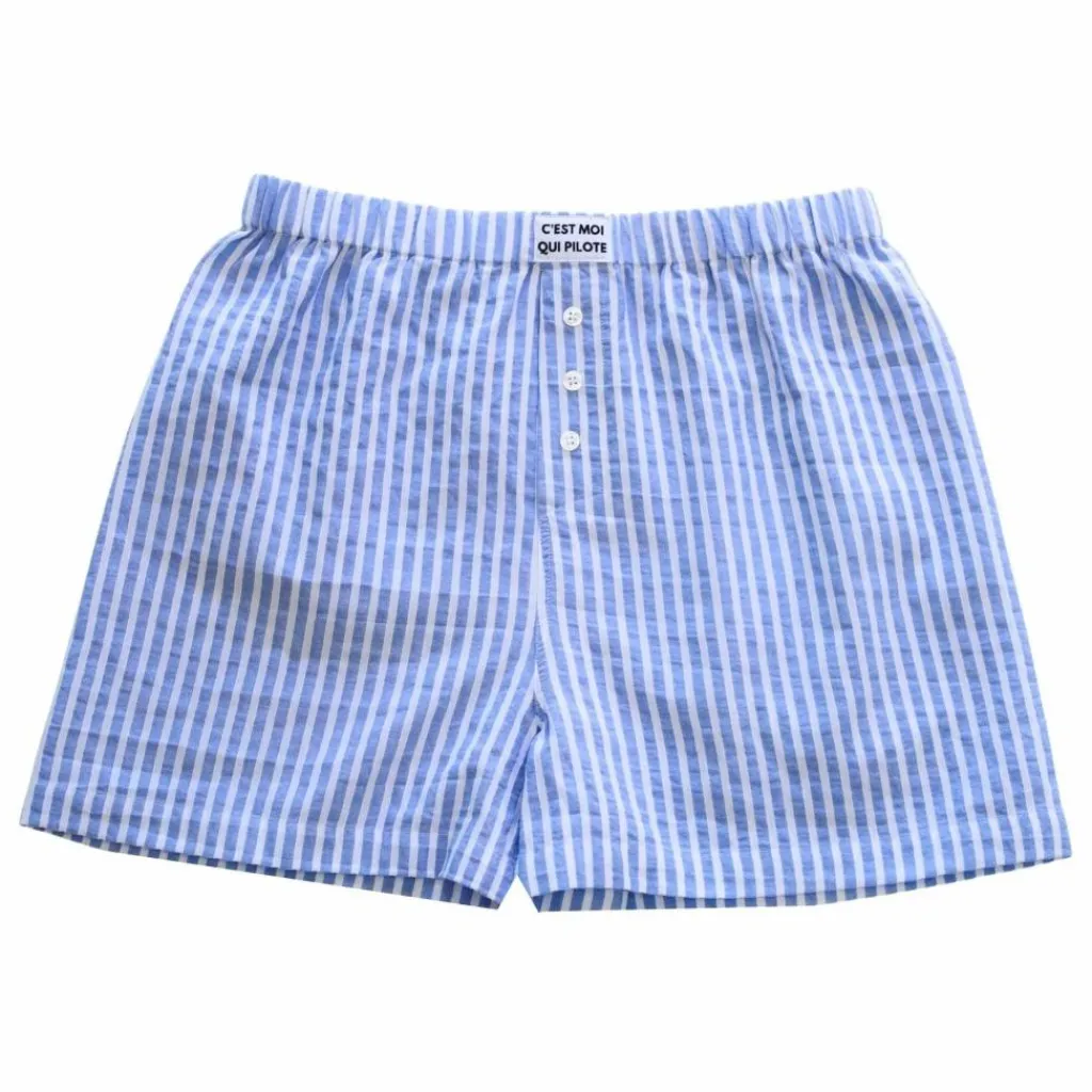 Les caleçons sont unisexes. Ils sont aussi un peu plus longs, avec une braguette fermée et une coupe droite au dos, pensés pour être portés aussi bien en intérieur qu’en extérieur, comme un short un brin décalé.