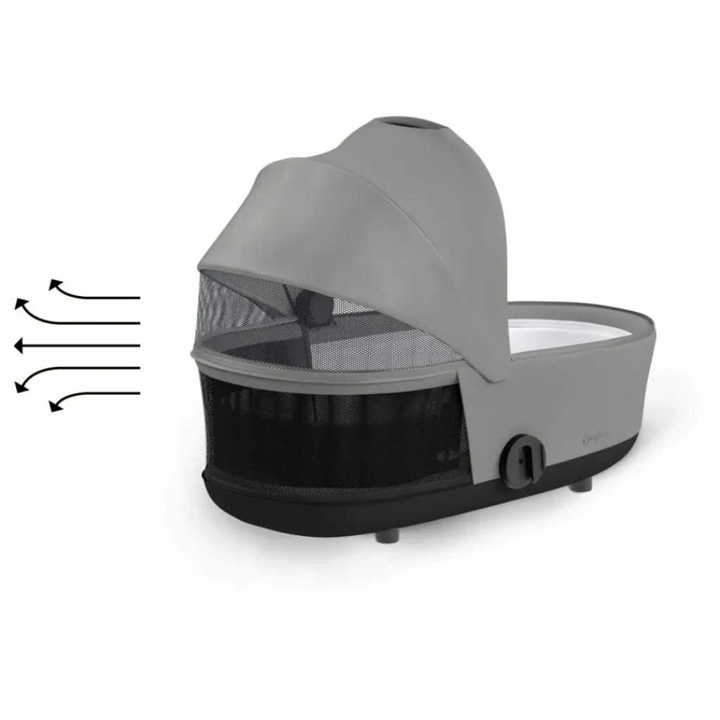 Nacelle Mios Lux Carry Cot (Dès la naissance jusqu’à 9 kg) : Canopy pare-soleil avec protection solaire UPF50+, Poignée de transport intégrée, Visière extensible, Boutons mémoire, Vue panoramique et ventilation optimale, Matelas extra confort