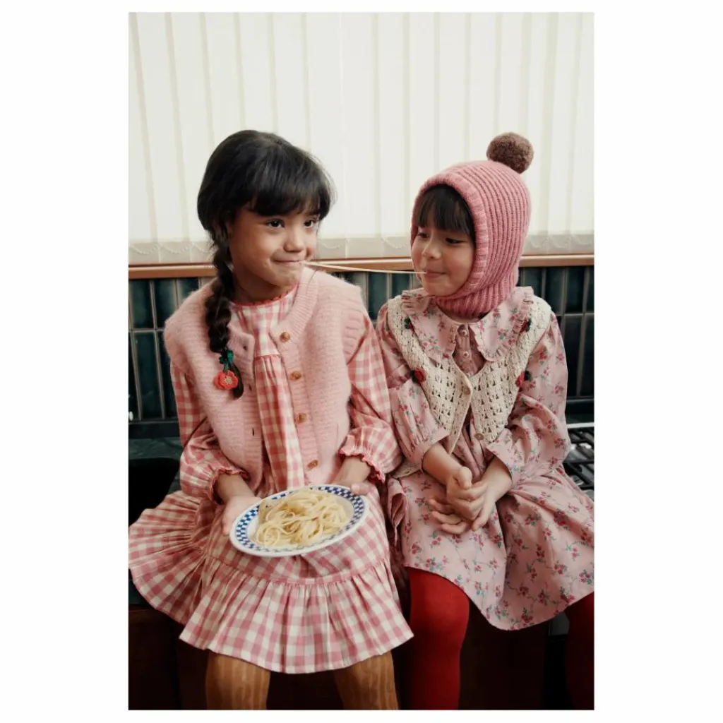 - Robe en coton orné de bouquets fleuris sur fond rose.