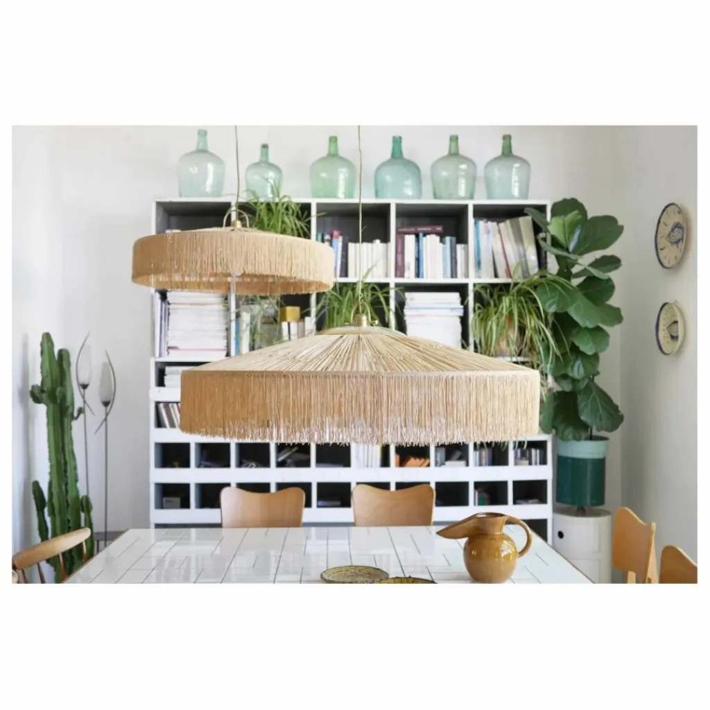 La suspension parasol à franges est inspirée des parasols à franges que l’on trouvaient dans les années 60 sur les plages de la French Riviera ou les plages de la côte italienne. Cette suspension en raphia donnera un coté chic à tous vos intérieurs.