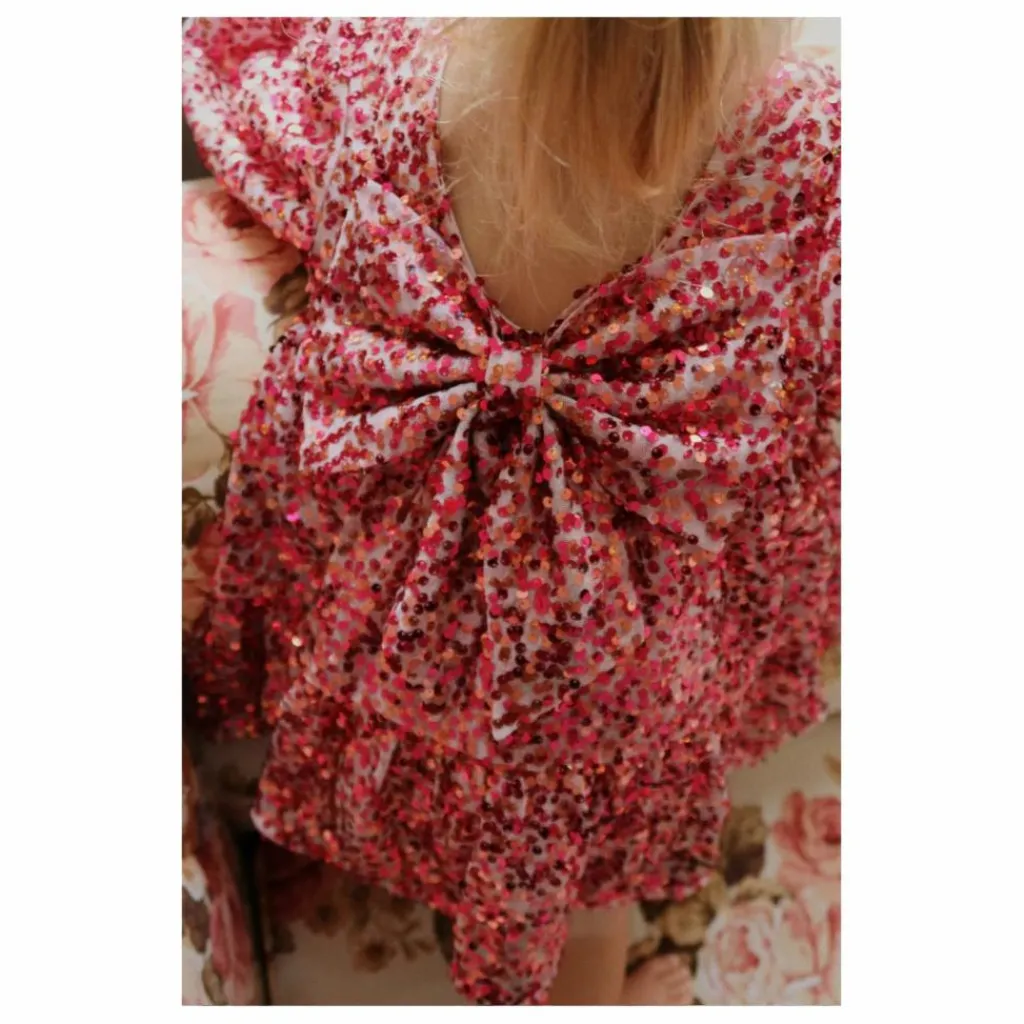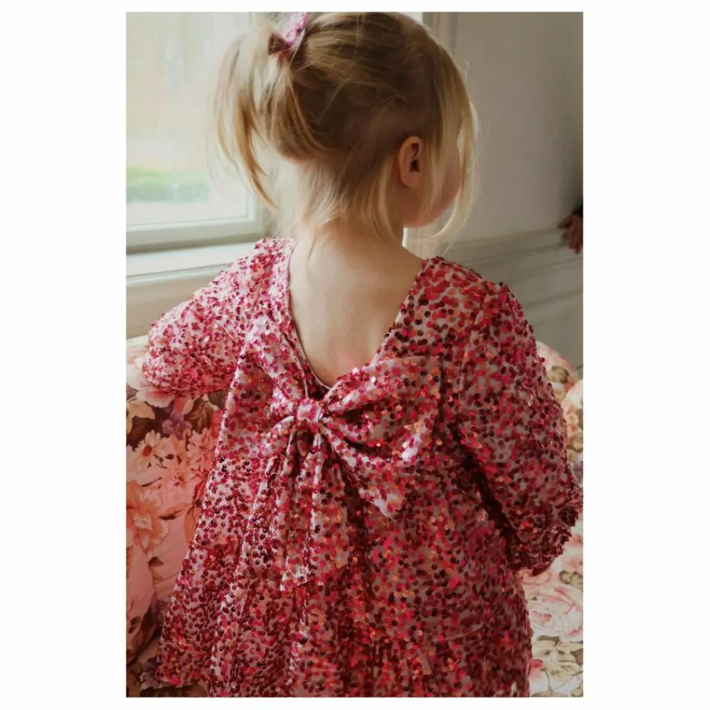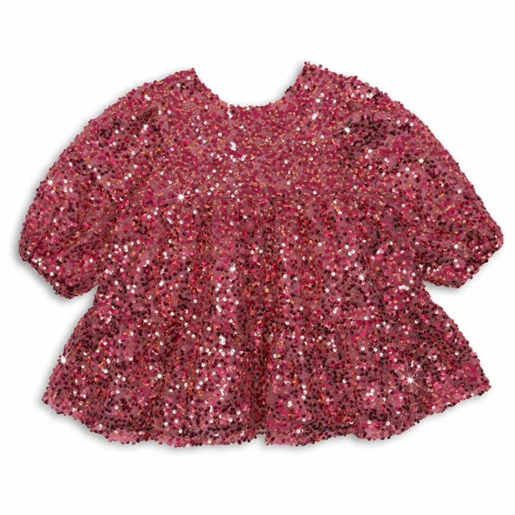 - La robe Lila est recouverte de paillettes étincelantes et présente des manches ballon décoratives et une jupe évasée avec une doublure en coton doux. 100% polyester avec une doublure en 100% coton.