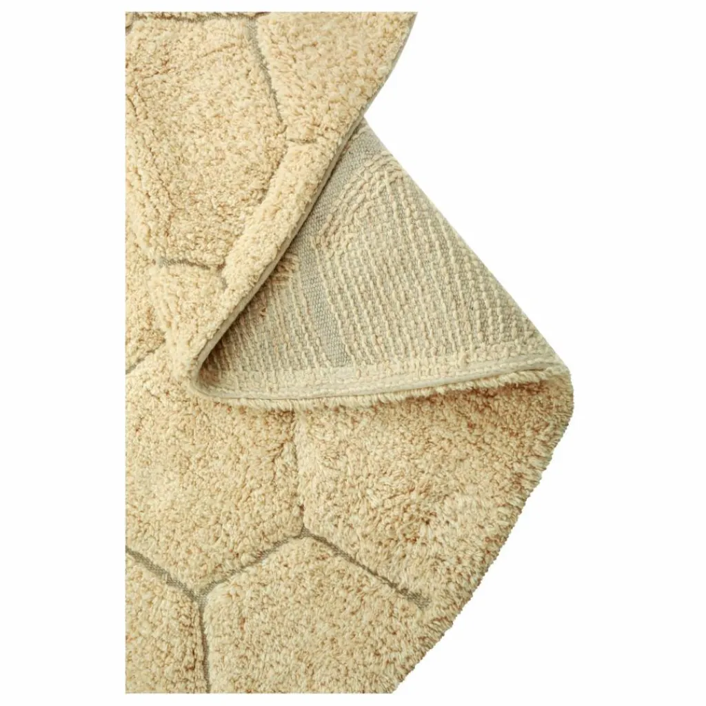 - Inspiré du motif géométrique en nid d’abeille, le tapis Round Honeycomb Golden est composé de doux patchs de couleurs hexagonaux touffetés dans les tons ivoire, vanille et doré. La toile de base est légèrement visible entre les taches de couleur, donnant une surface structurée au tapis.