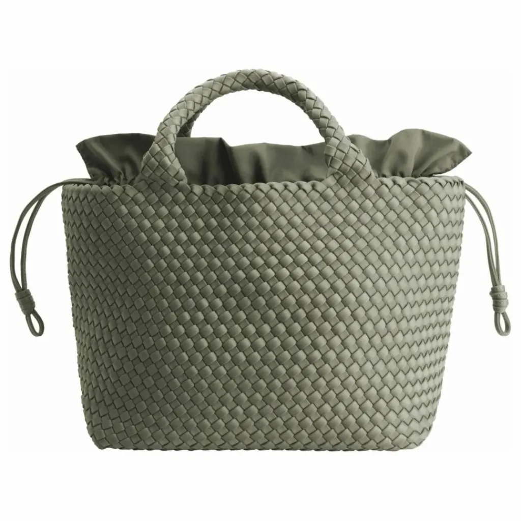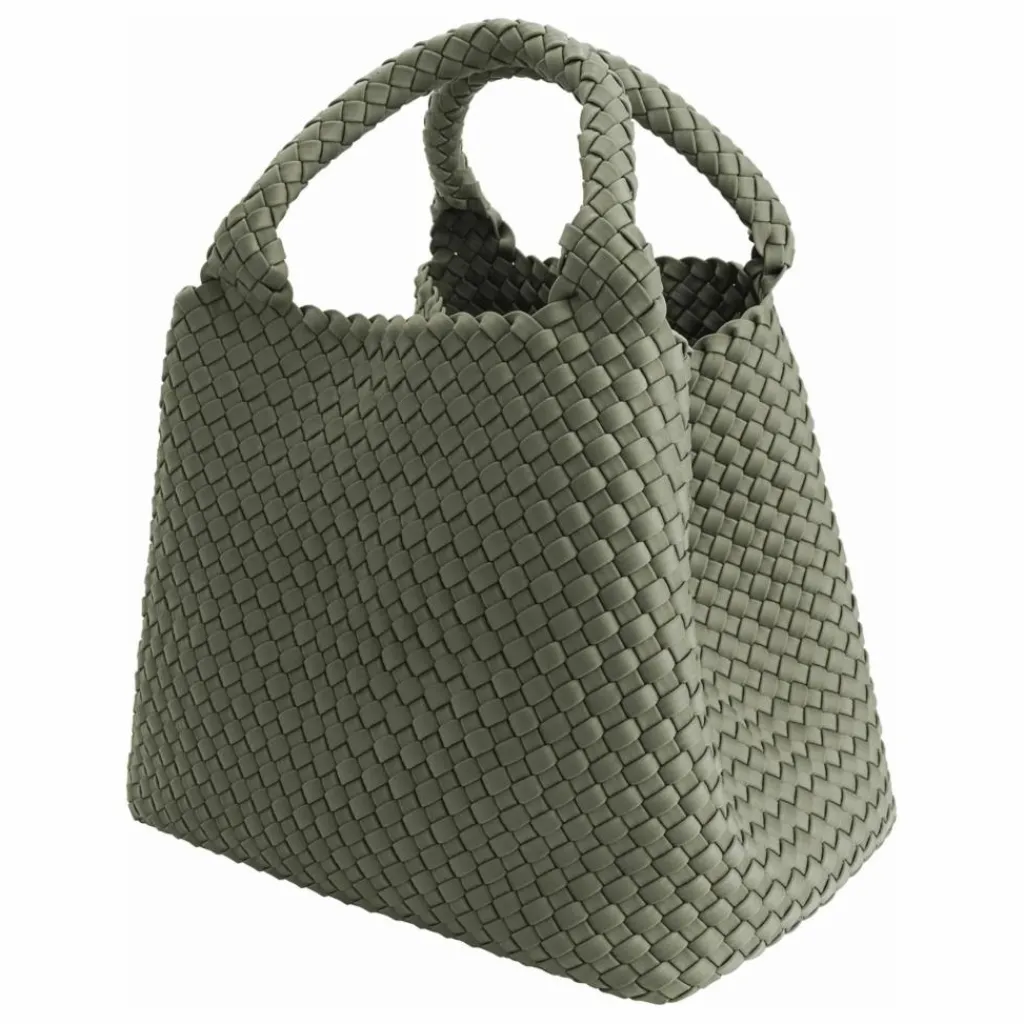 - Tissé à la main en néoprène. 2 poignées supérieures pour le portage à la main, au coude ou à l’épaule. Sac à poussière résistant à l’eau inclus. Matériel de couleur or. Fermeture à crochet + porte-clés. Crochets pour attacher une bandoulière.